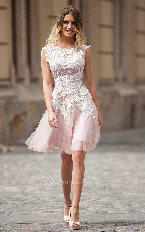 Cap Sleeve Lace And Tulle Short Prom Dress
