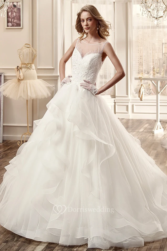 Cap-Sleeve Long Wedding Dress With Illusion And Ruching Skirt