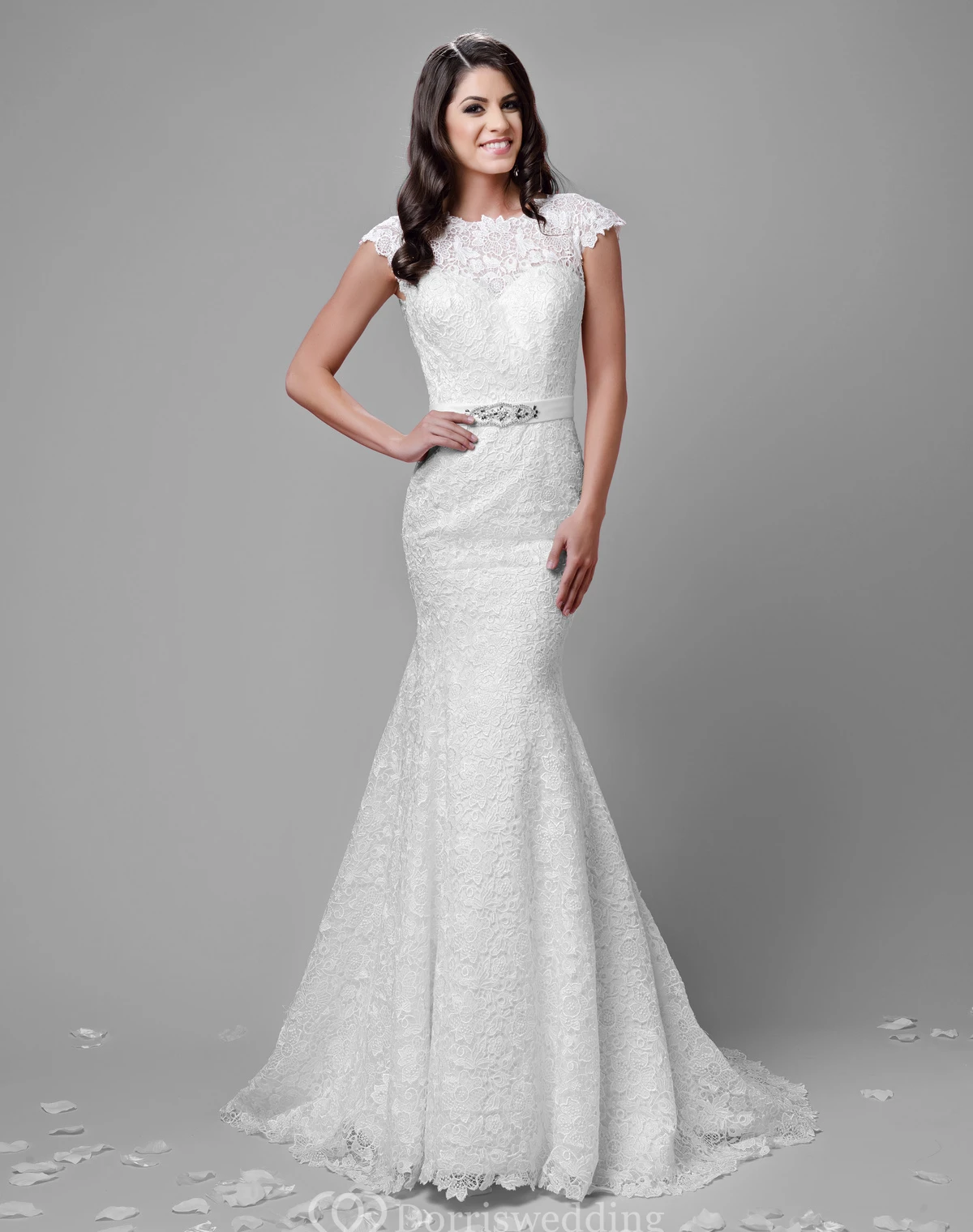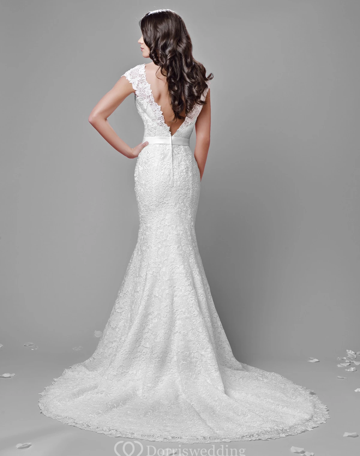 Cap Sleeve Mermaid Lace Wedding Dress With Deep V-Back