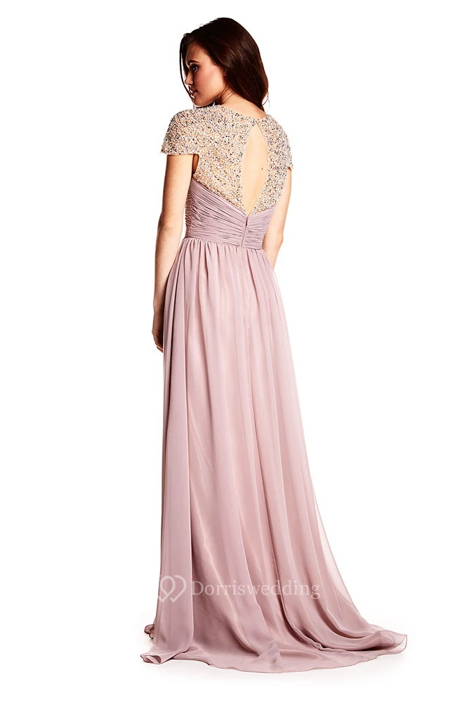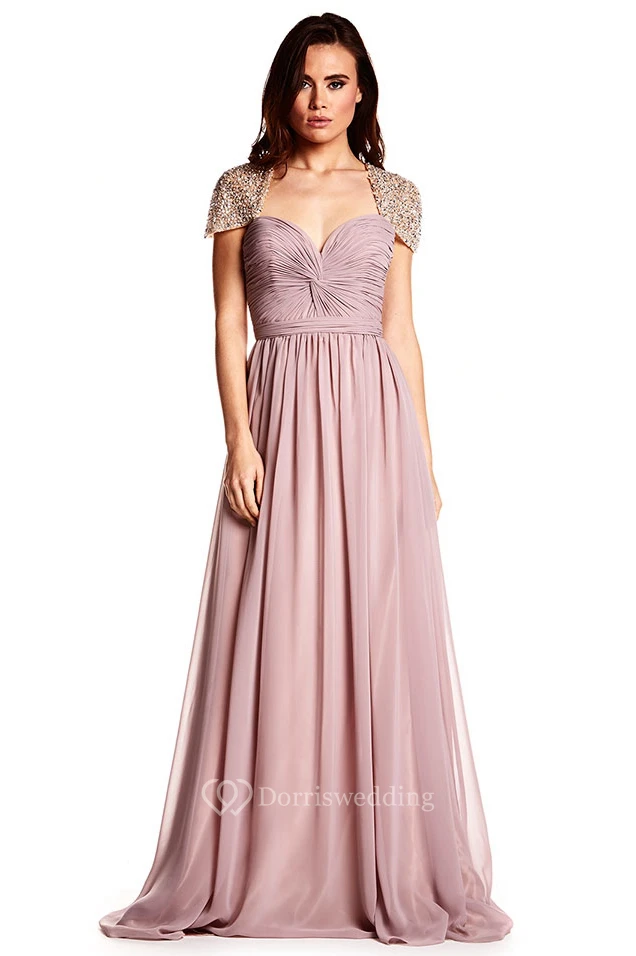Cap Sleeve Ruched Sweetheart Chiffon Prom Dress