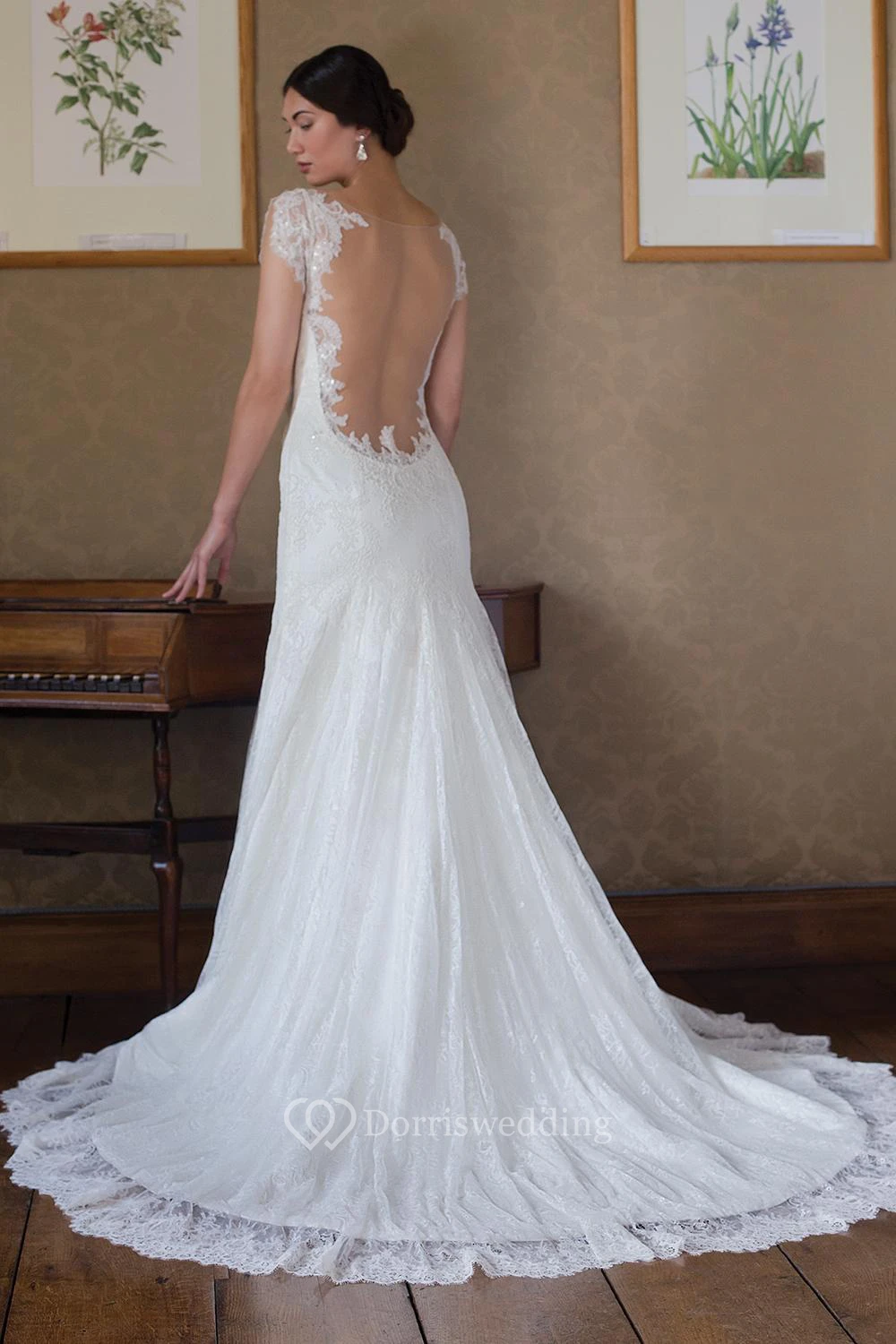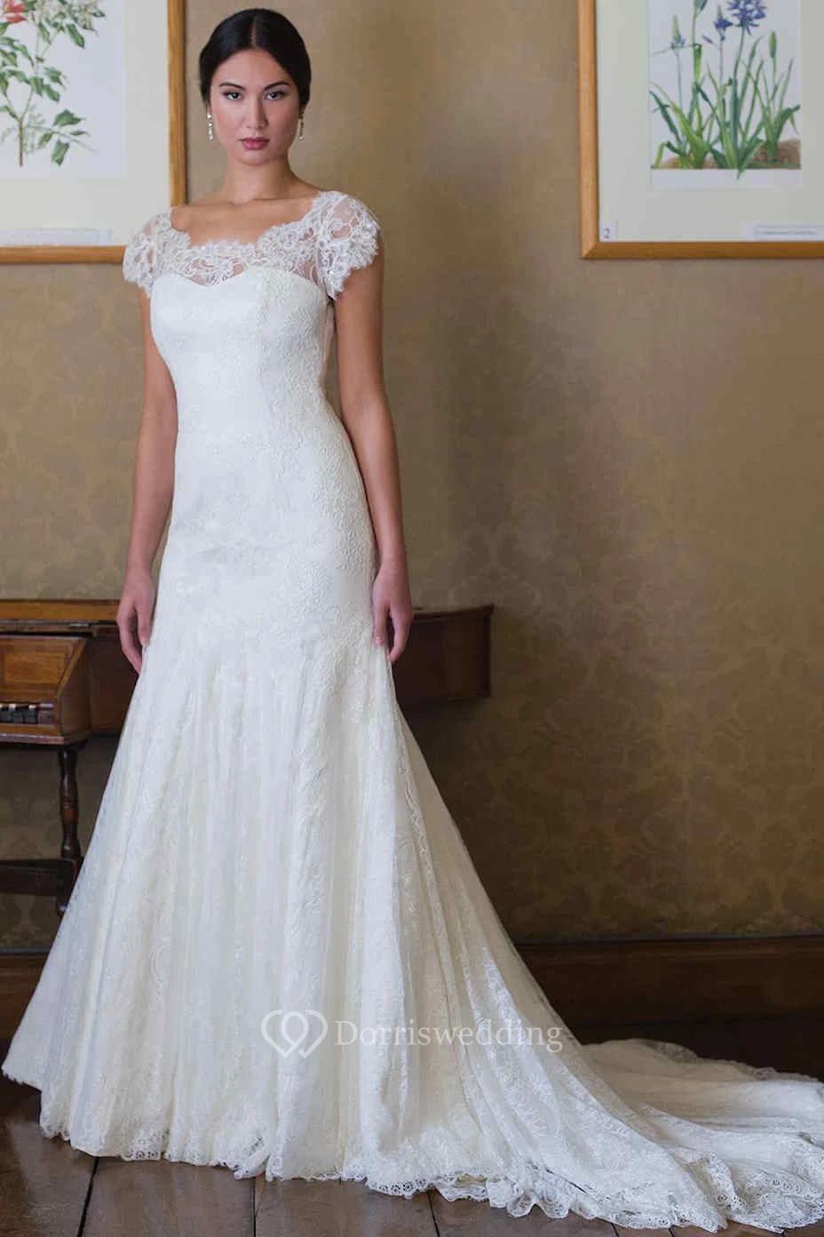 Cap-Sleeve Scoop-Neck Lace Wedding Dress With Illusion