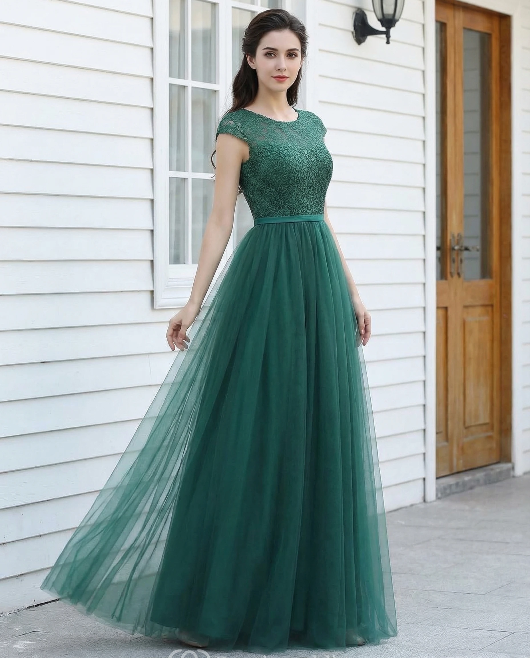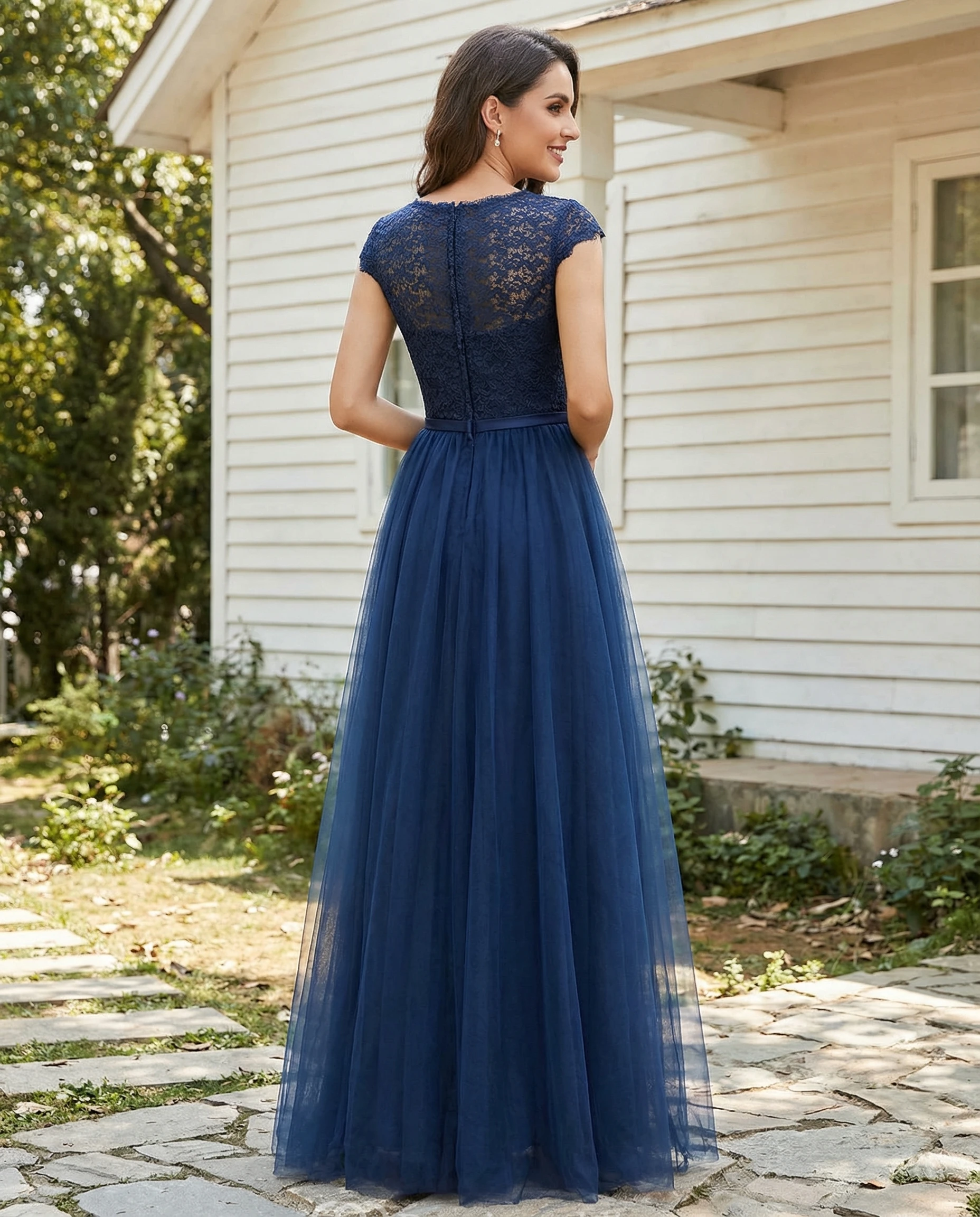 Cap-Sleeve Scoop Neck Tulle A-Line Dress