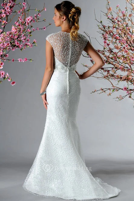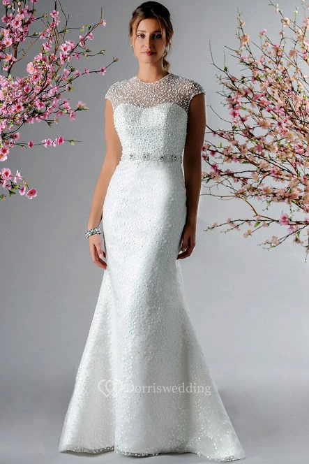 Cap Sleeve Sequined Mermaid Bridal Gown With Beading Waist