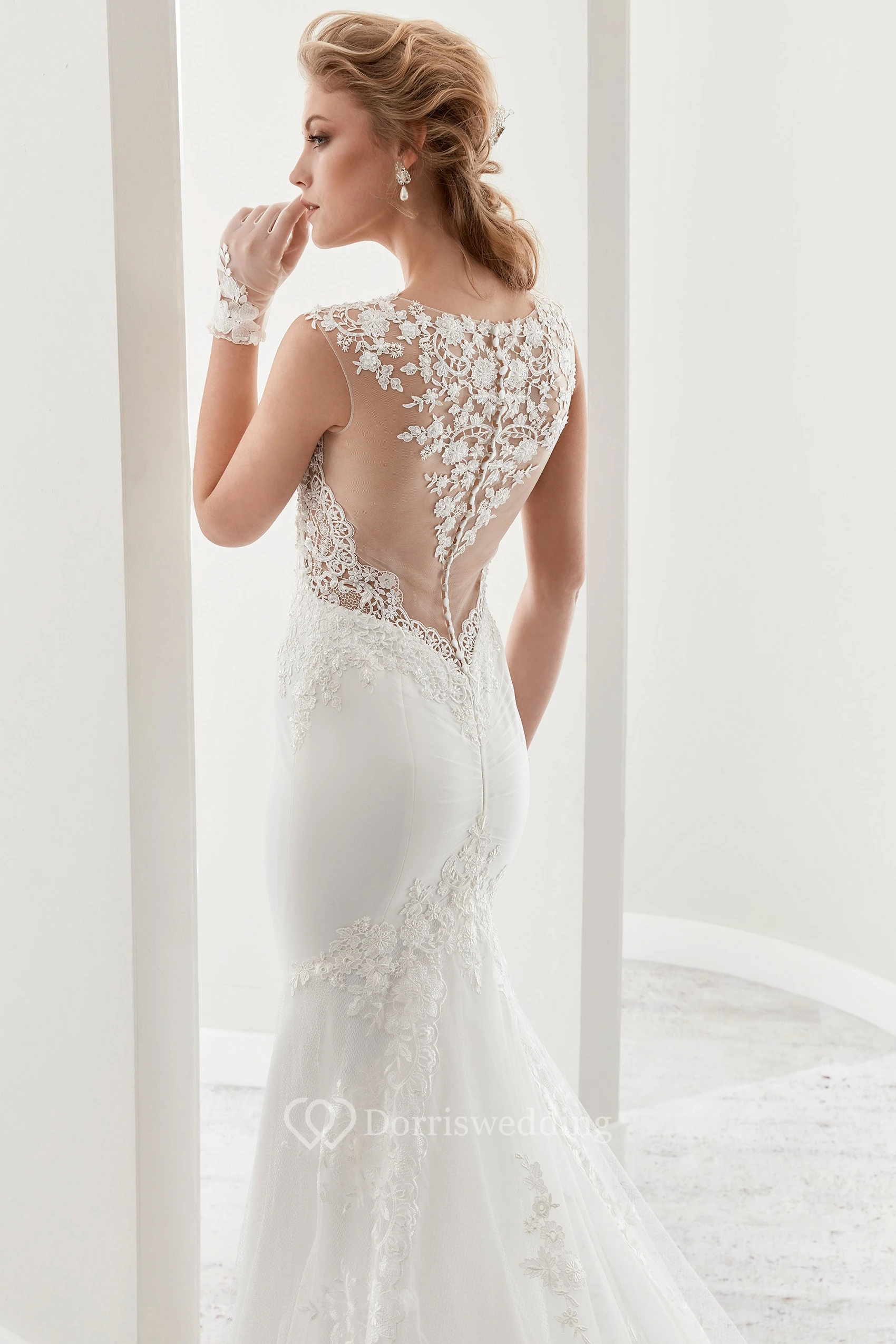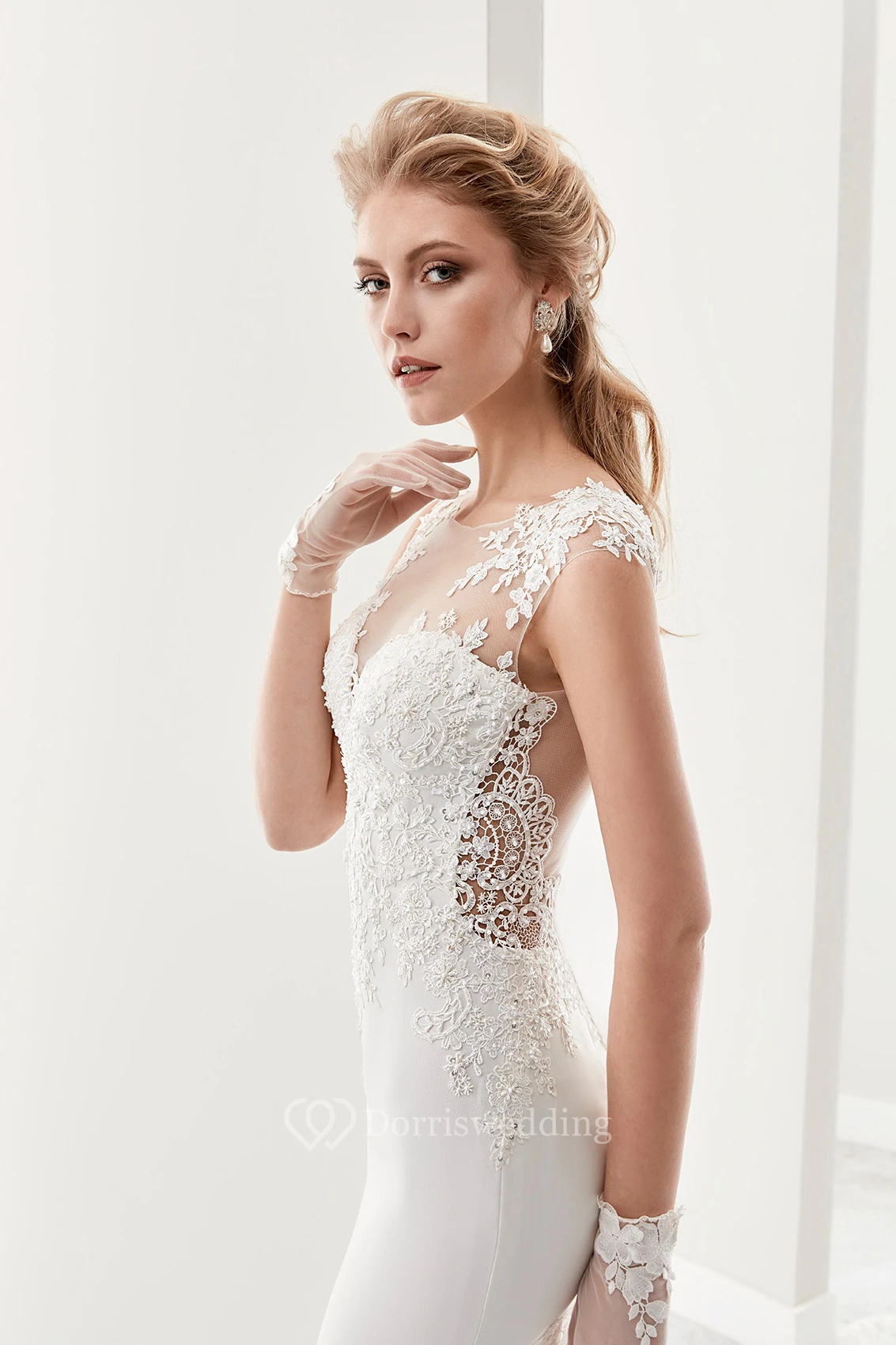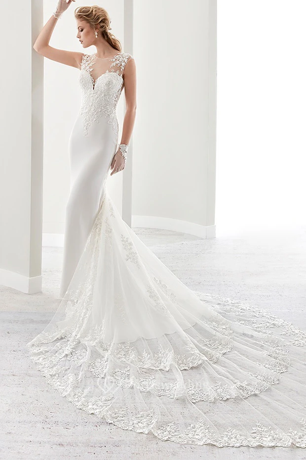 Cap Sleeve Sheath Bridal Gown With Illusion Details And Chapel Train