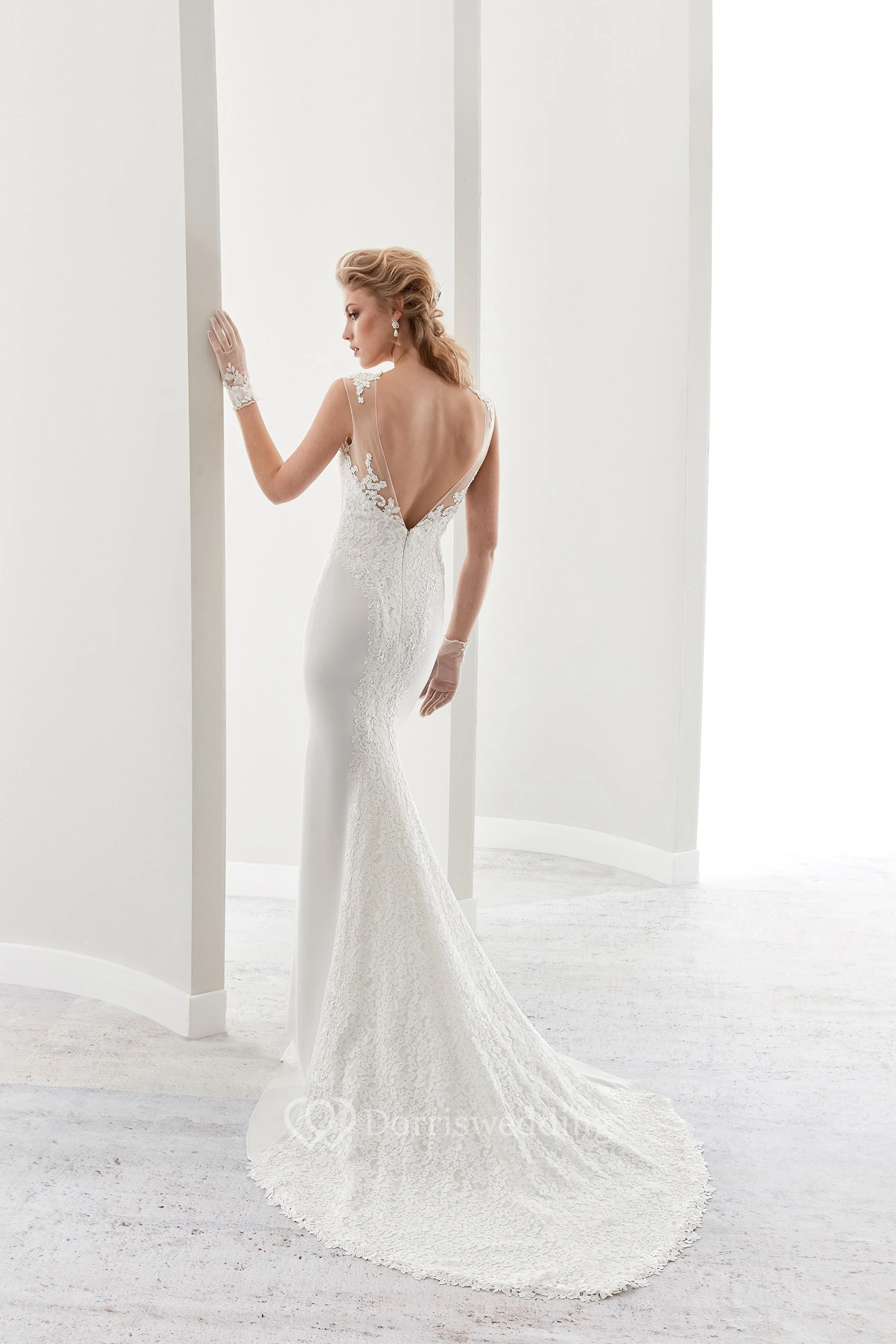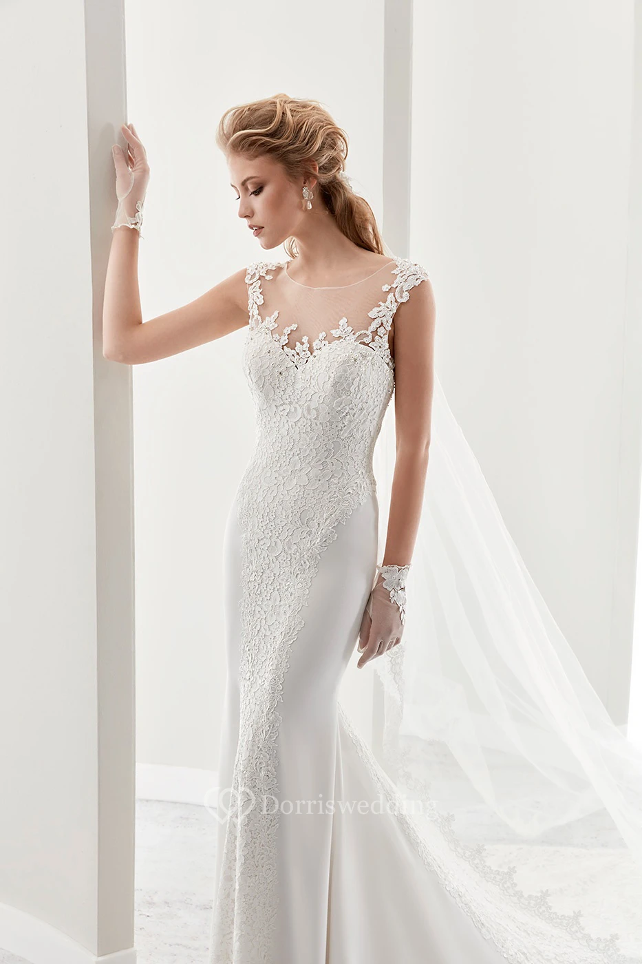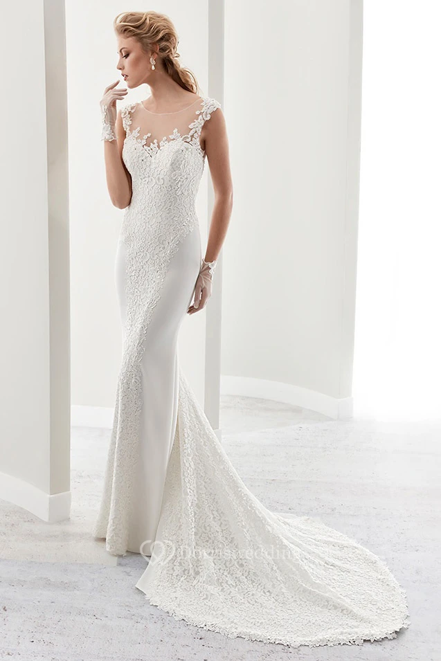 Cap Sleeve Sheath Bridal Gown With Illusion Details And Low-V Back