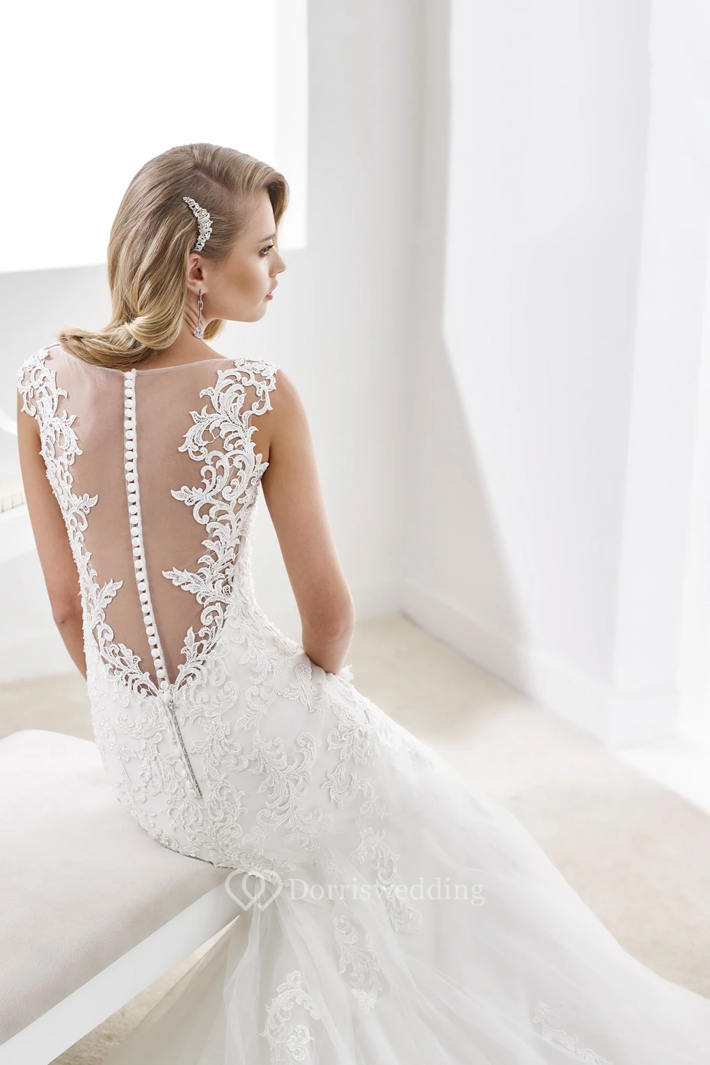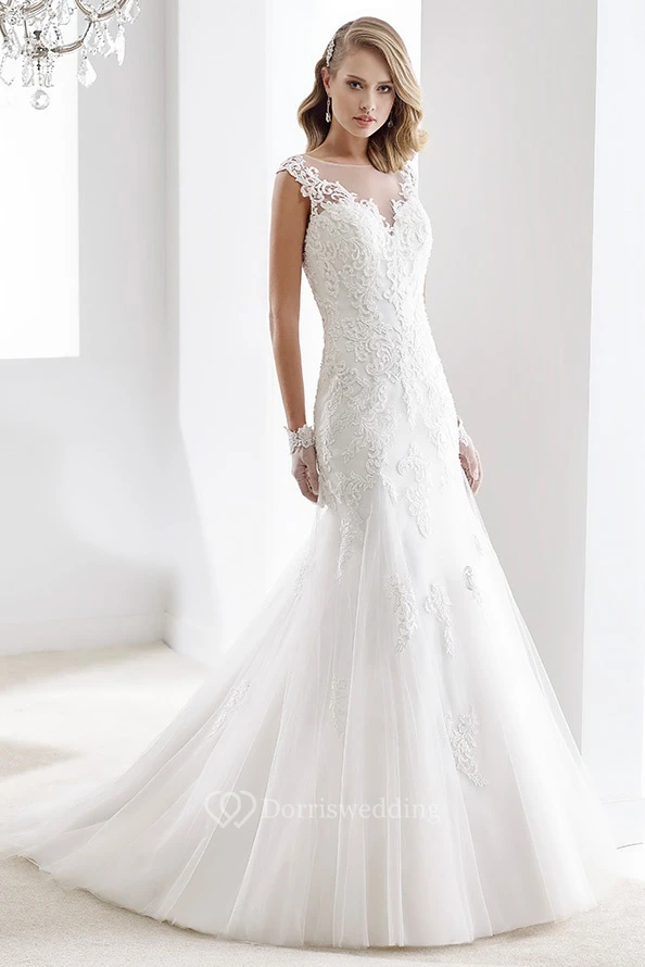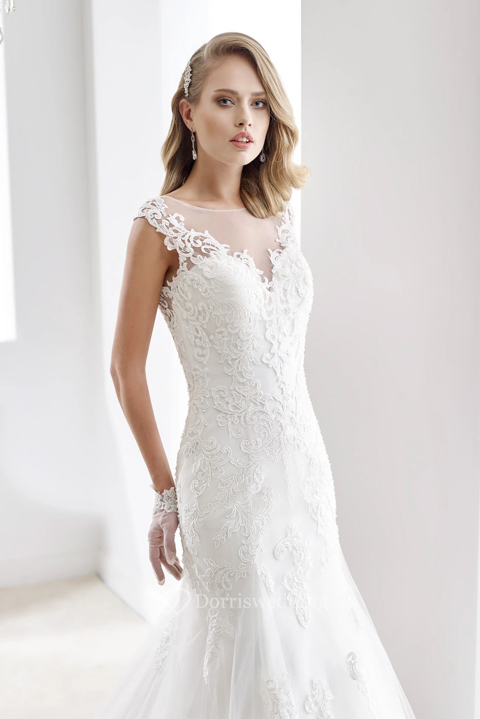 Cap-Sleeve Sheath Bridal Gown With Mermaid Style And Illusive Design