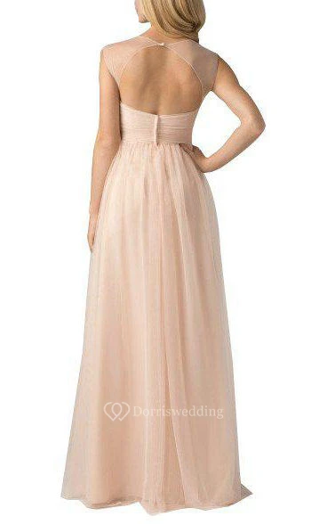 Cap Sleeve Tulle A-line Long Dress