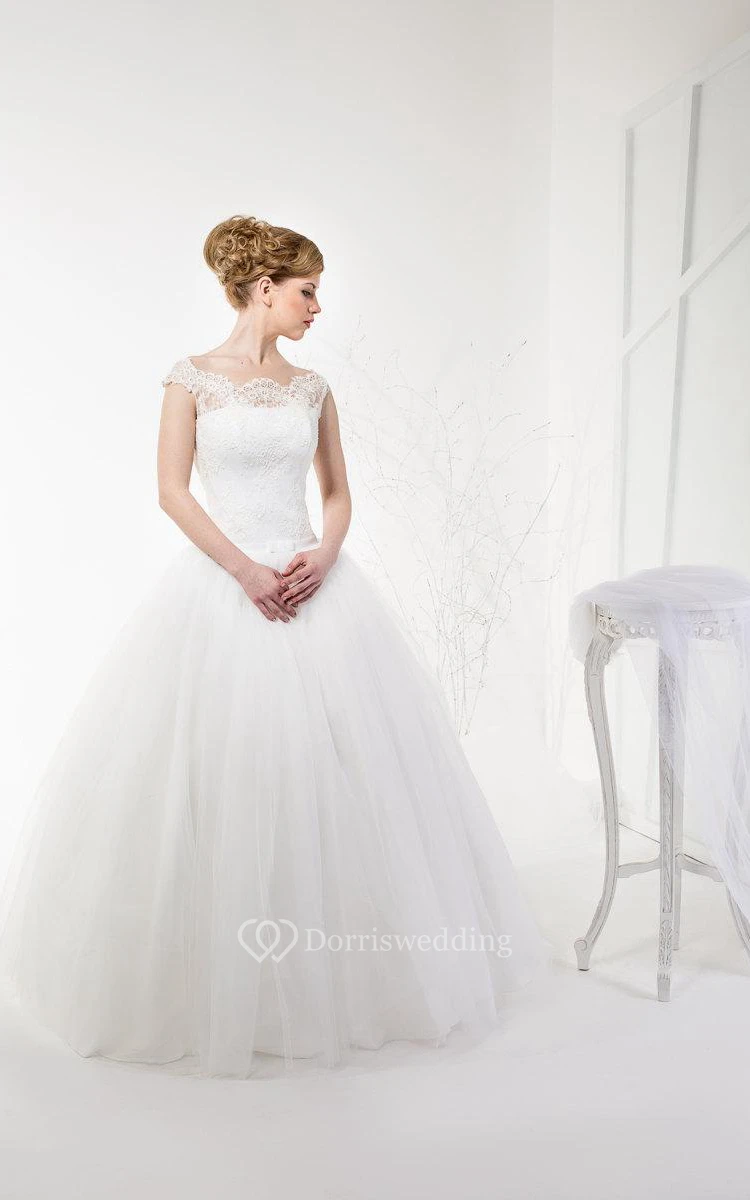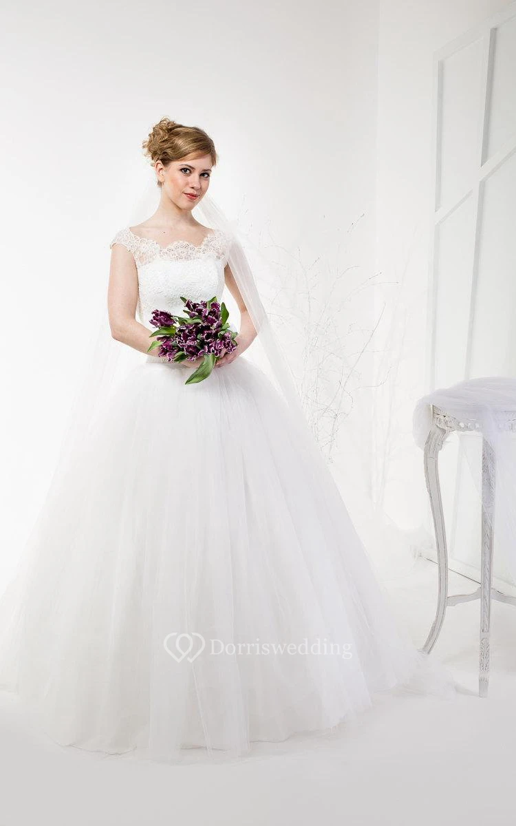 Cap Sleeve Tulle Dress With Lace Bodice and Lace-Up Back