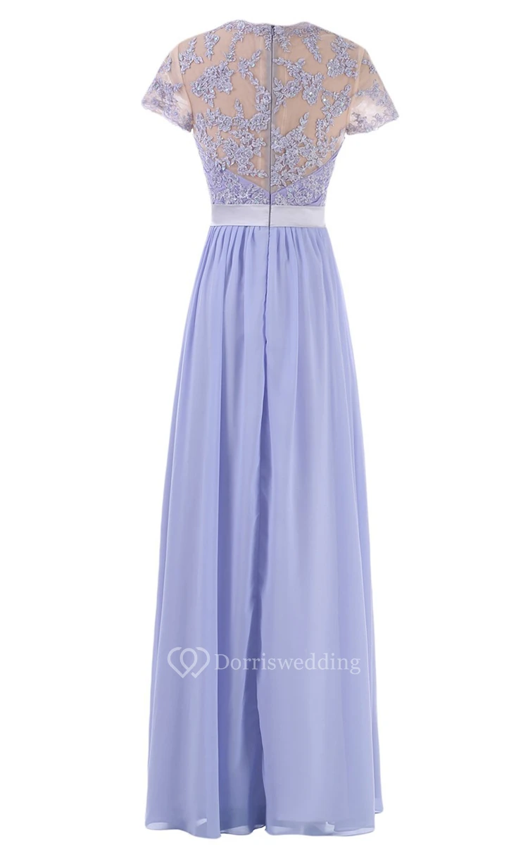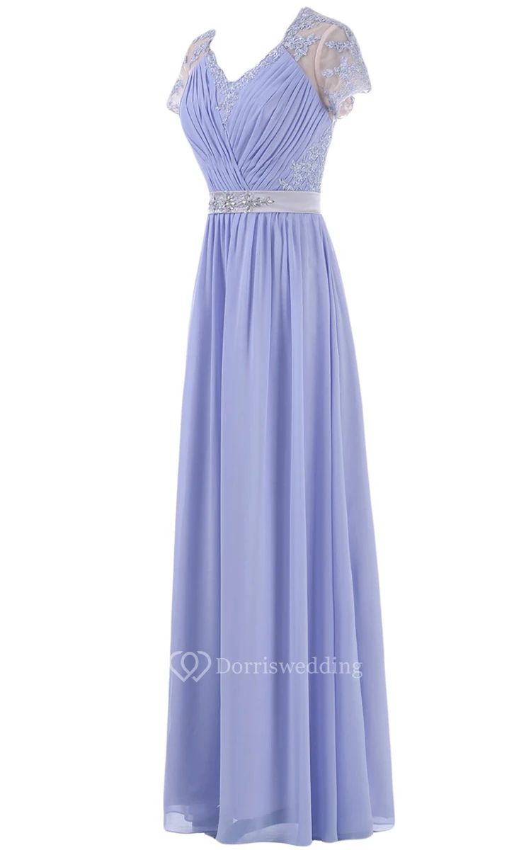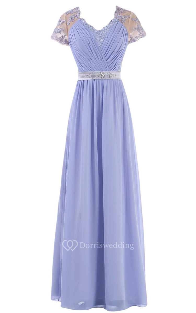 Cap-sleeve V-neck Embroideried A-line Gown With Crystal-beaded Band