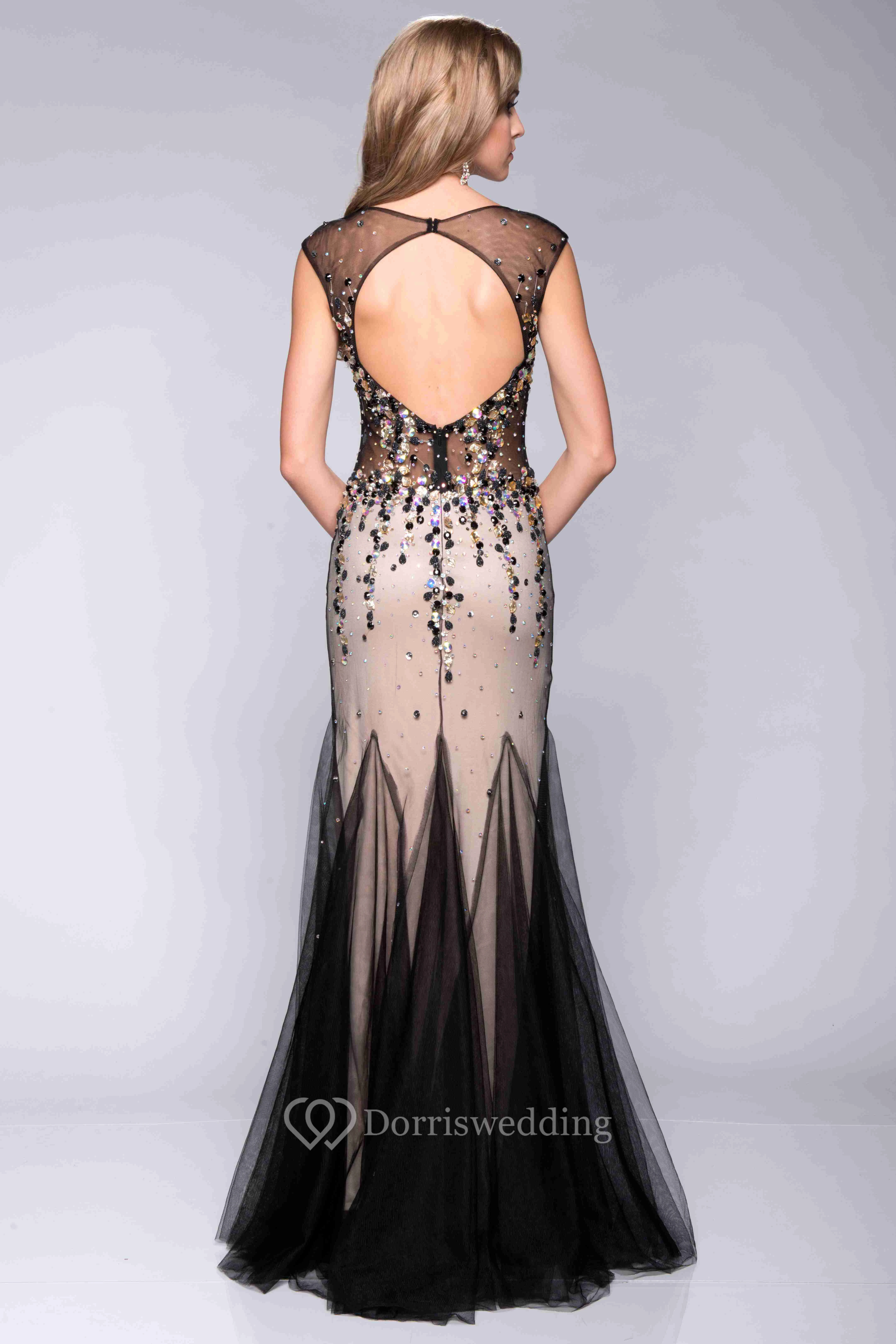 Cap Sleeve V-Neck Sequined Prom Dress Featuring Special Skirt