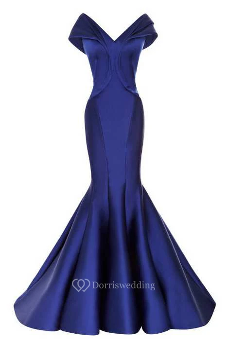 Cap Sleeve V Neckline Mermaid Satin Gown