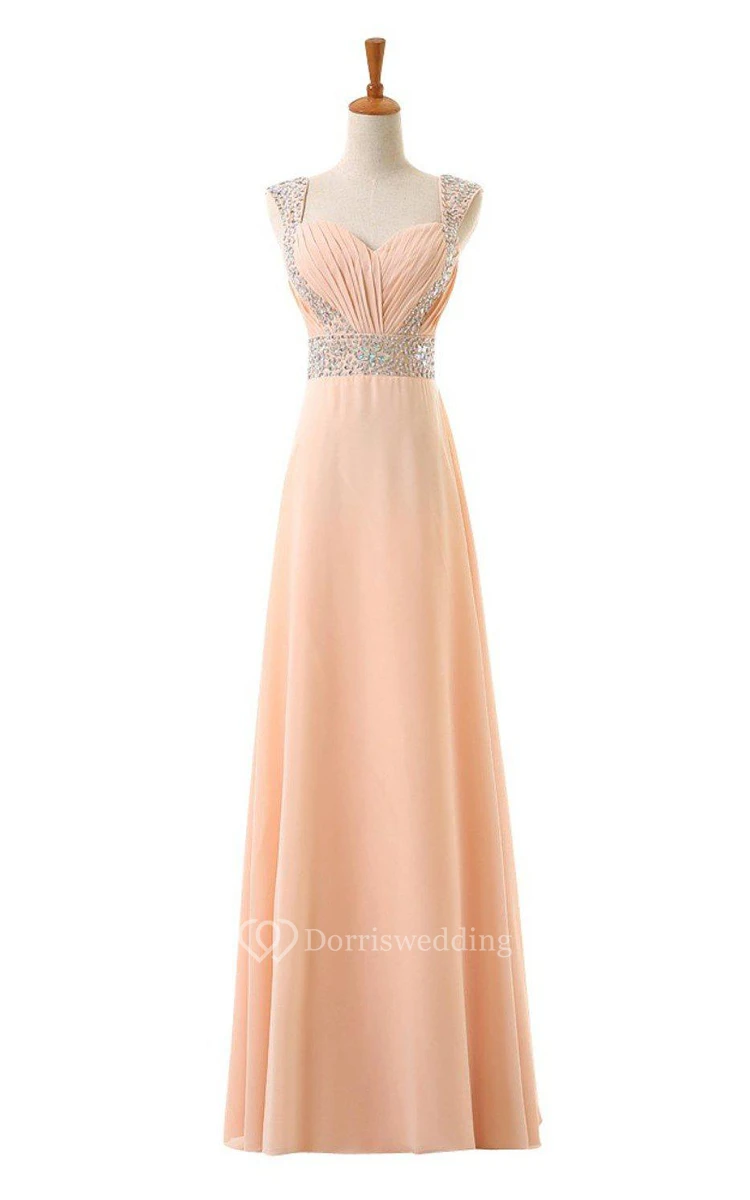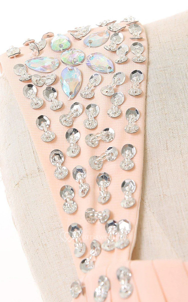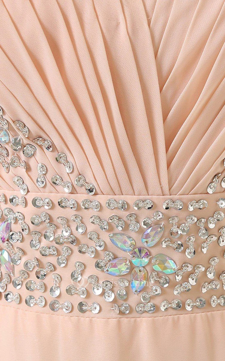 Cap-sleeved A-line Chiffon Dress With Sequined Shoulders