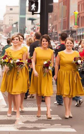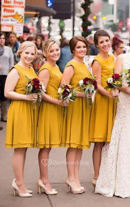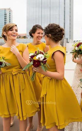 Cap-sleeved A-line Knee-length Chiffon Dress with Pleats