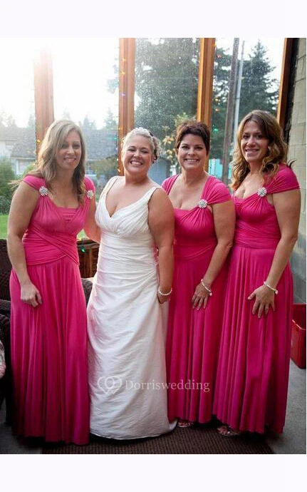 Cap-sleeved A-line Long Chiffon Dress with Pleats