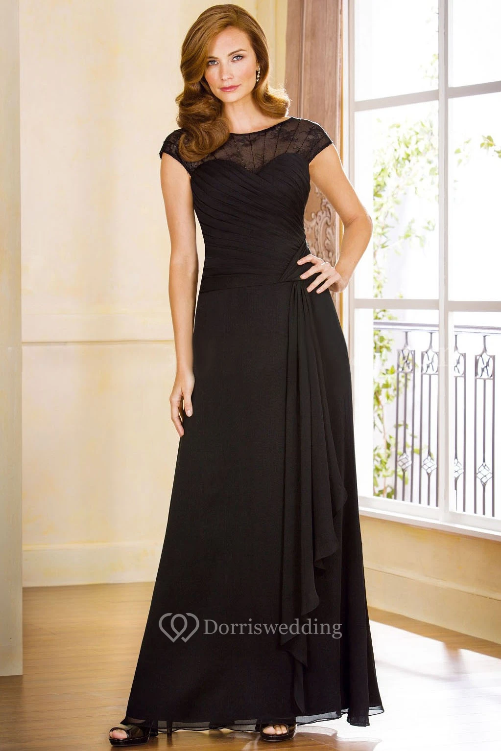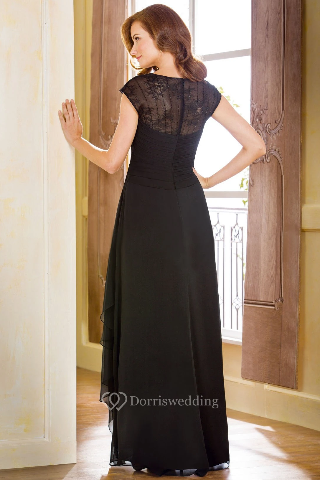 Cap-Sleeved A-Line Mother Of The Bride Dress With Ruffles And Illusion Back