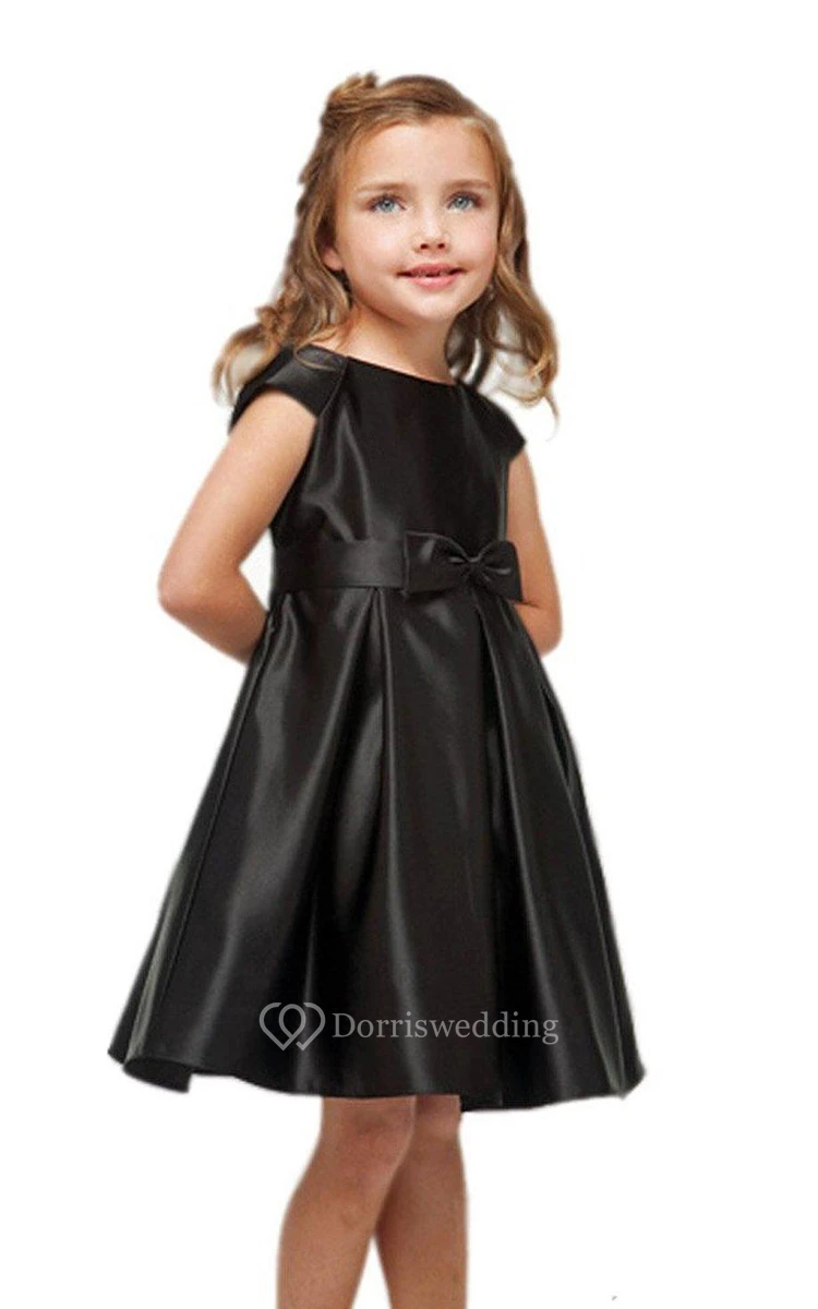Cap-sleeved A-line Pleated Dress With Bow