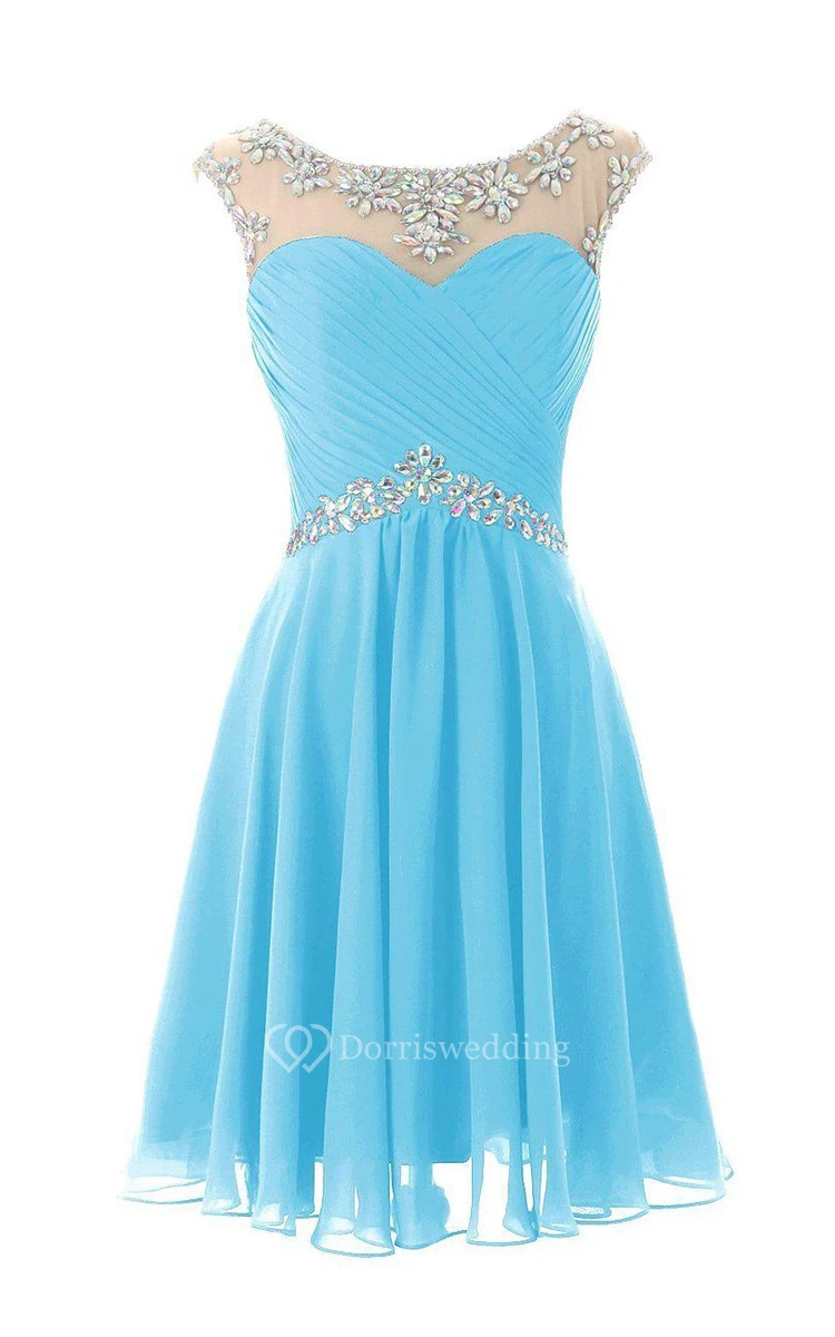 Cap-sleeved A-line Short Dress With Pleats