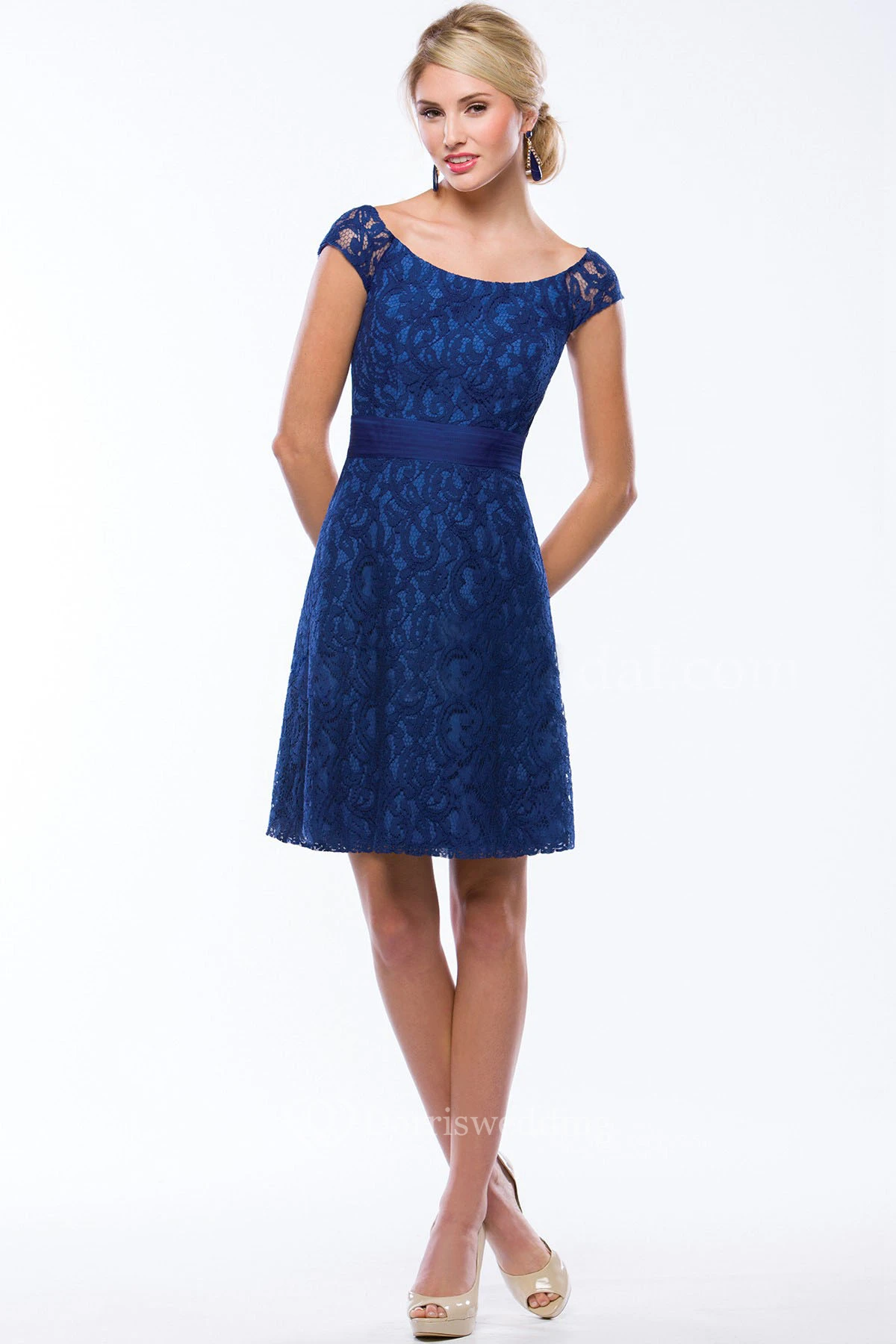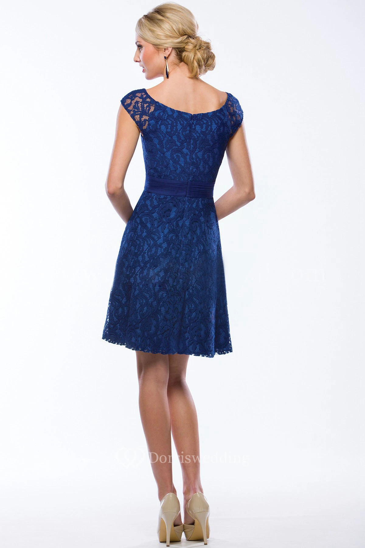 Cap-Sleeved A-Line Short Lace Bridesmaid Dress With Scoop Neck