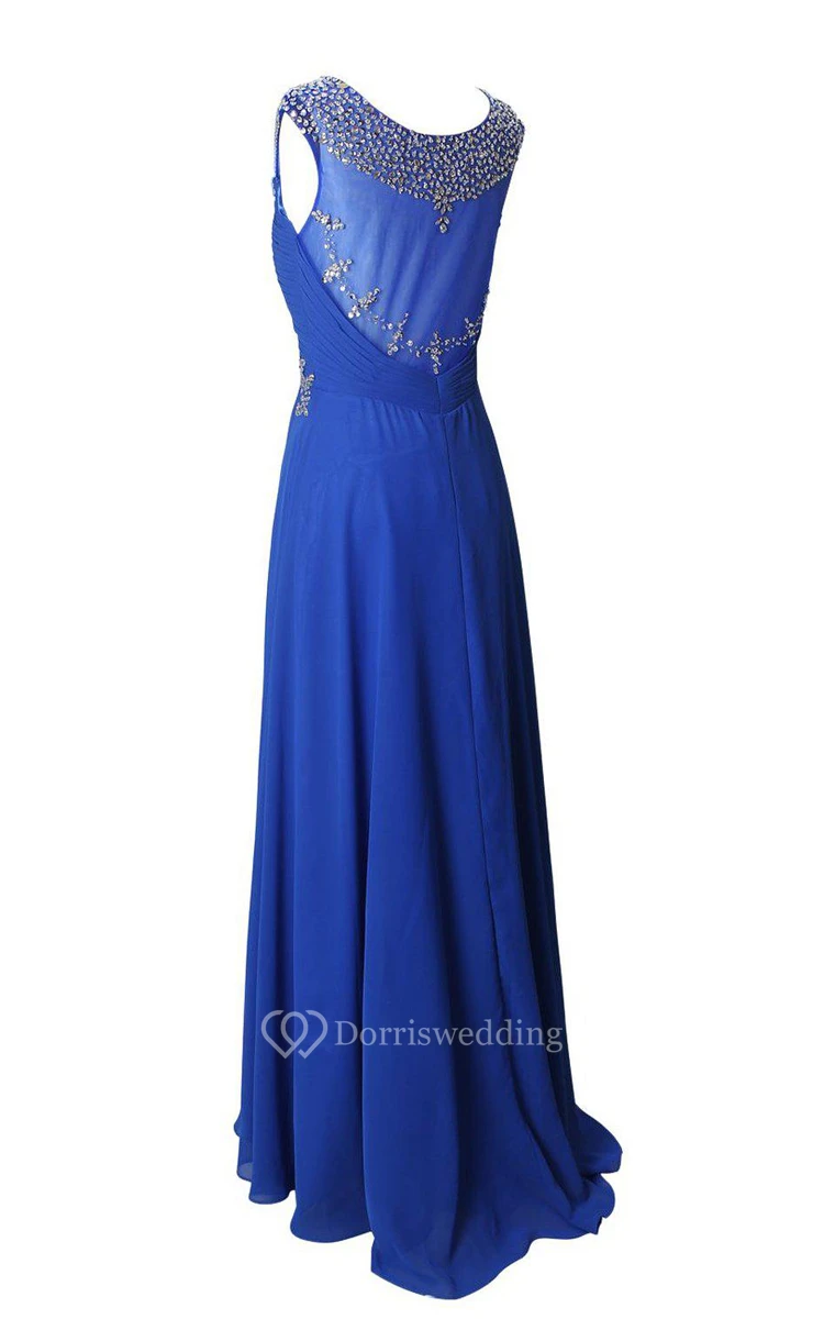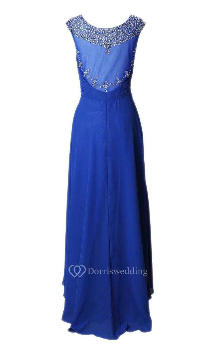 Cap-sleeved Chiffon Dress With Beading and Illusion Back