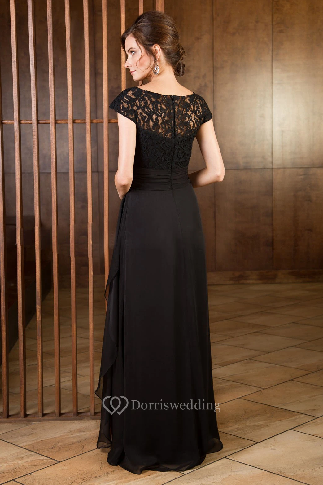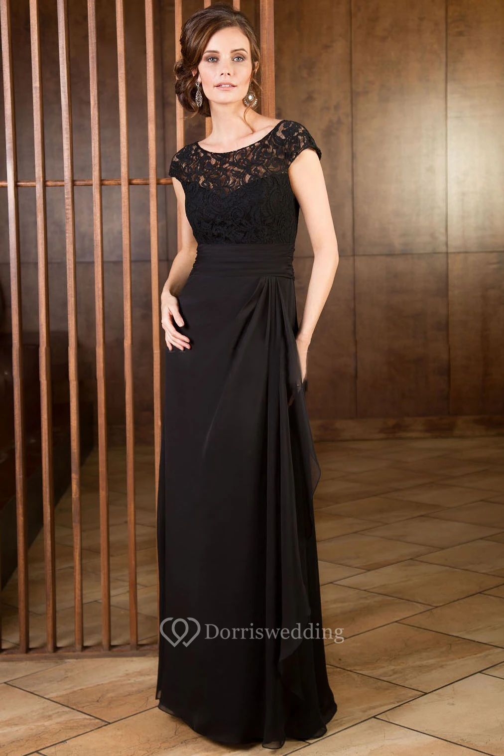 Cap-Sleeved Long Mother Of The Bride Dress With Ruffles And Lace Bodice