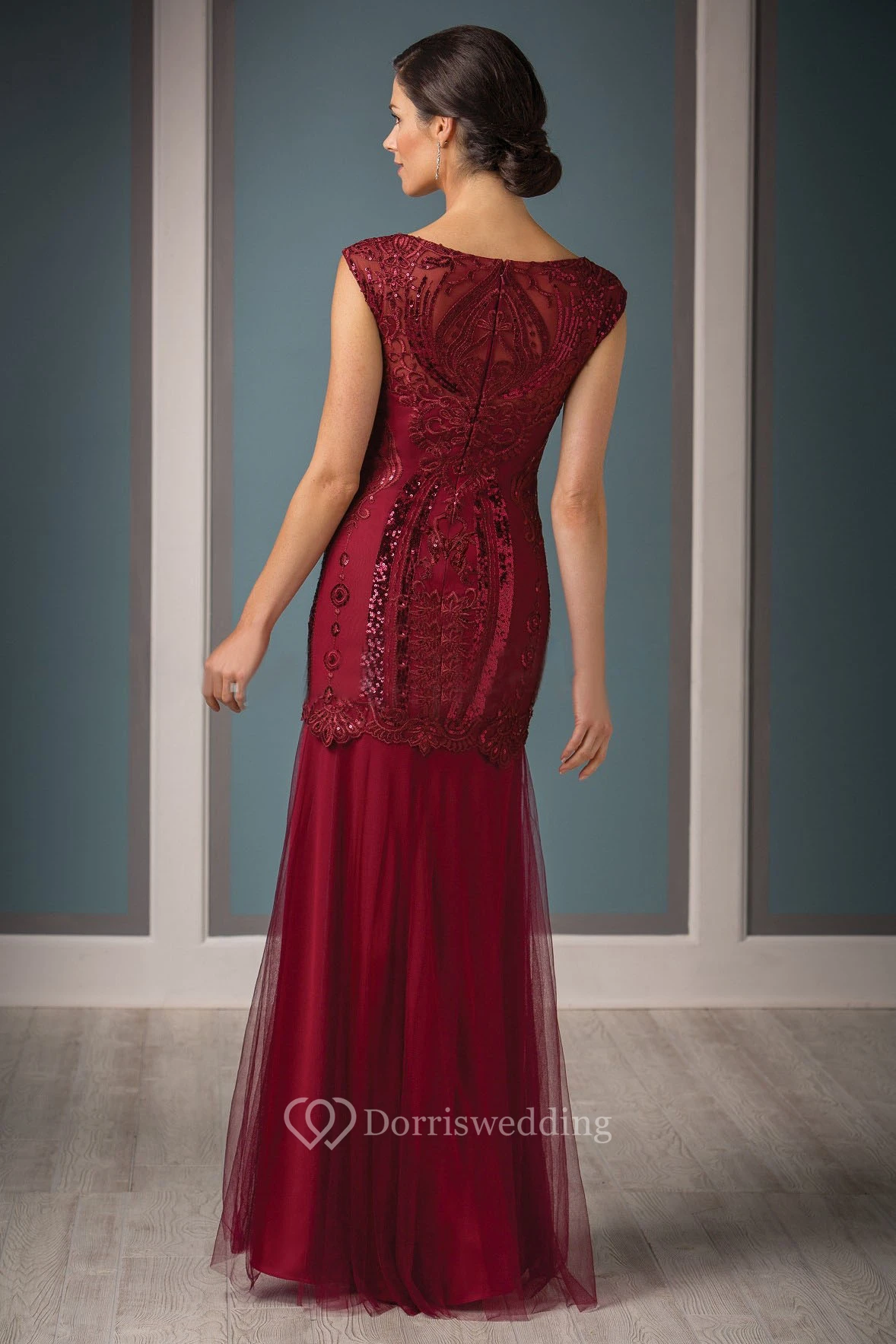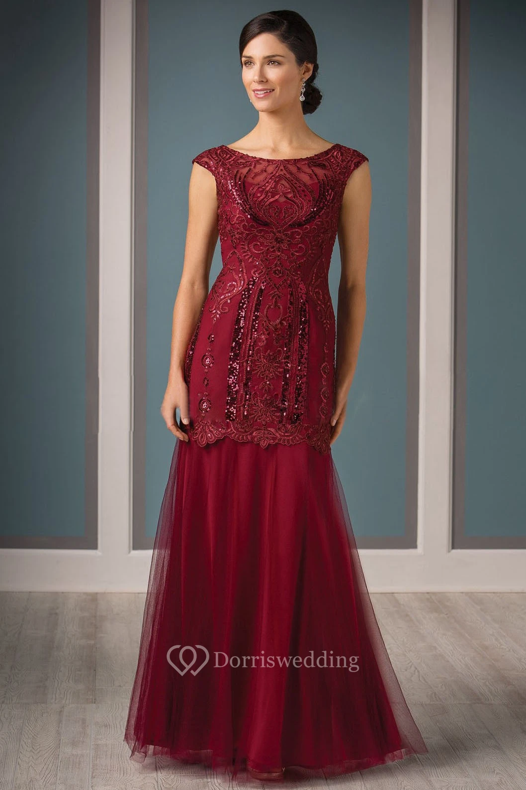 Cap-Sleeved Long Mother Of The Bride Dress With Sequins And Embroidery