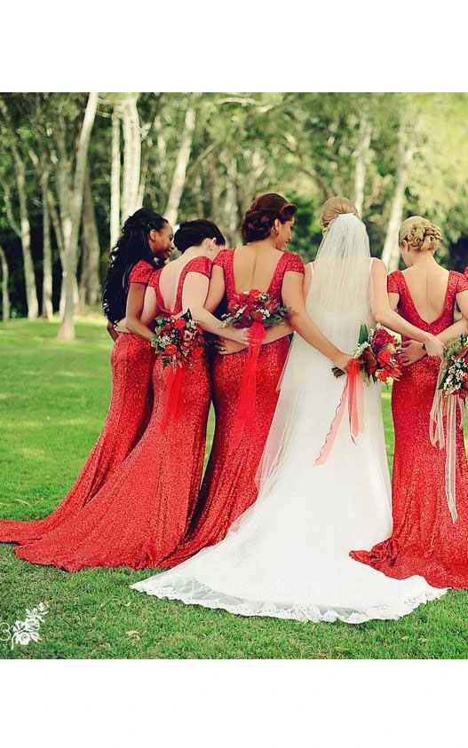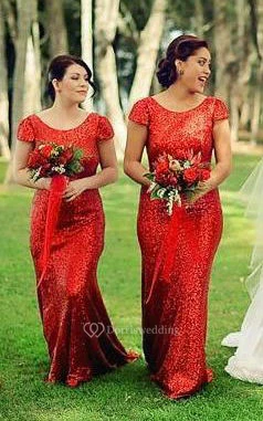 Cap-sleeved Long Sheath Dress with Scoop Neck and Sequins