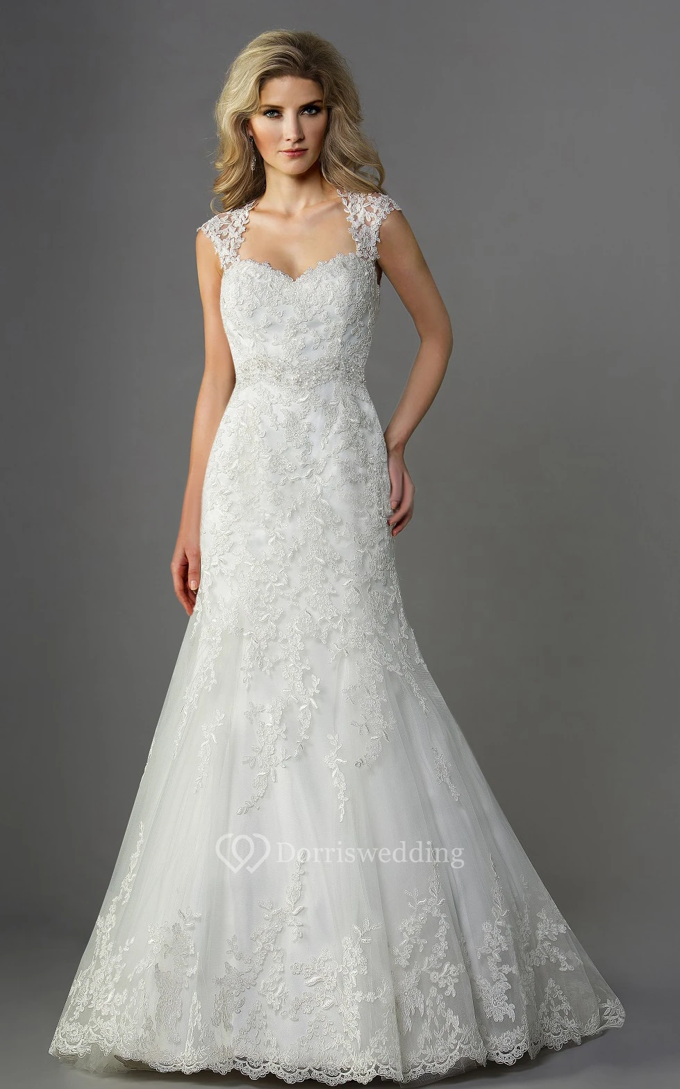 Cap-Sleeved Mermaid Gown With Lace Detail And Keyhole Style