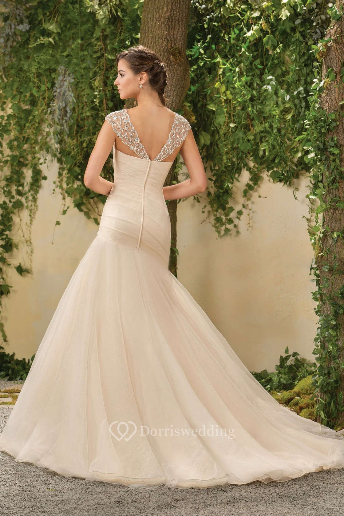 Cap-Sleeved Mermaid Wedding Dress With Jewels And V-Back