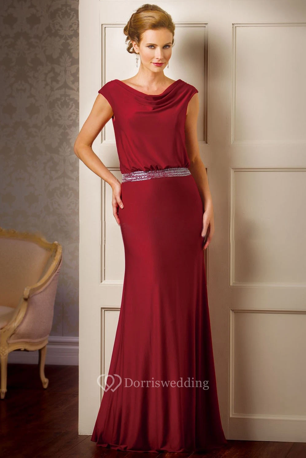 Cap-Sleeved Mother Of The Bride Dress With Sequins And Draping