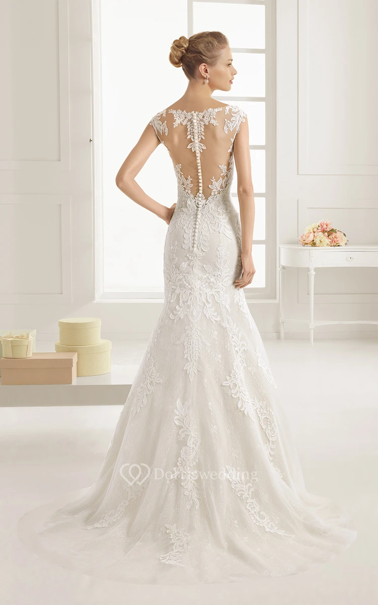 Cap-Sleeved Regal Appliqued Dress With Illusion Neck