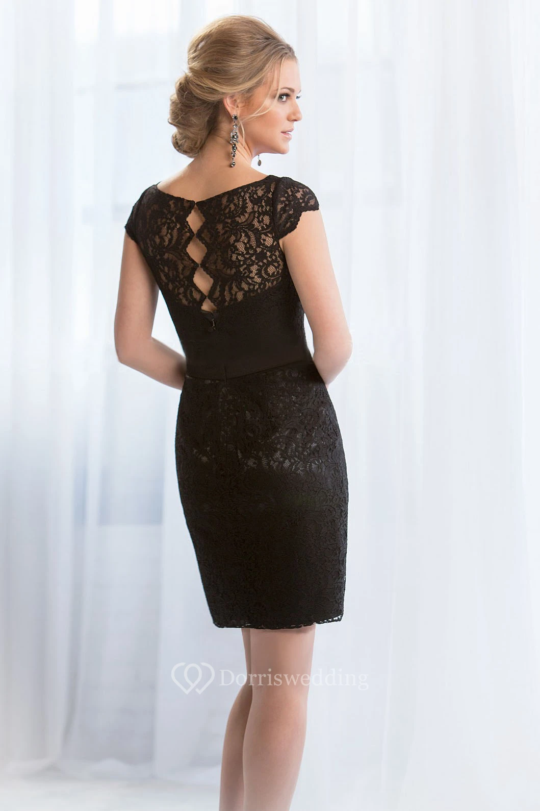 Cap-Sleeved Short Sheath Lace Bridesmaid Dress With Keyhole Back