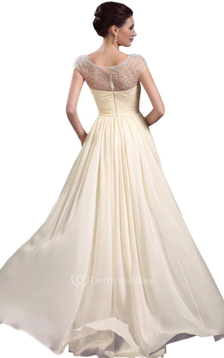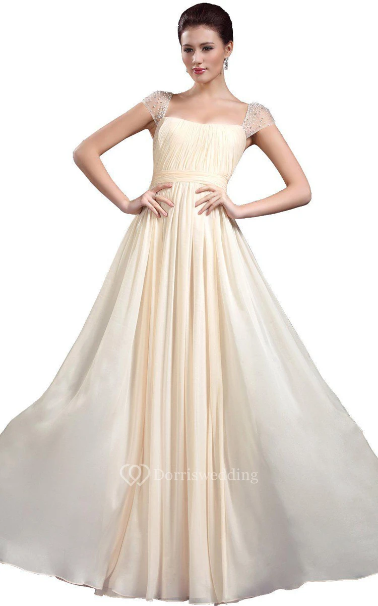 Cap-sleeved Square Neck A-line Chiffon Gown
