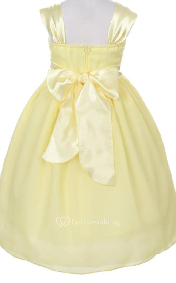 Cap-sleeved Square-neck A-line Dress With Belt and Pleats