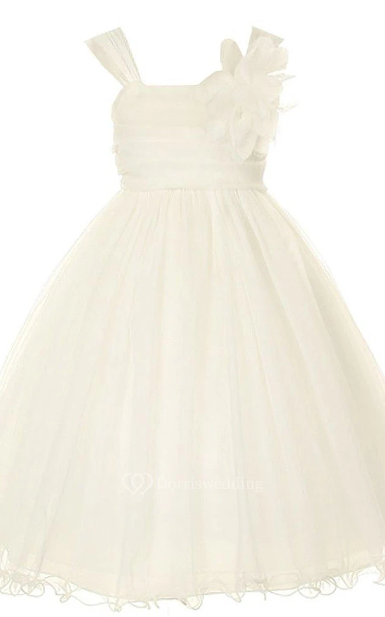 Cap-sleeved Square-neck A-neck Dress With Flower