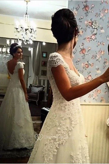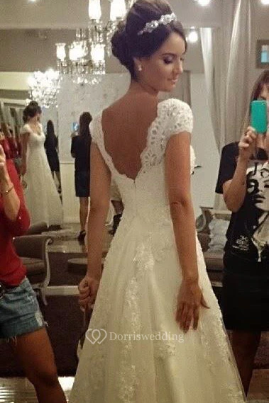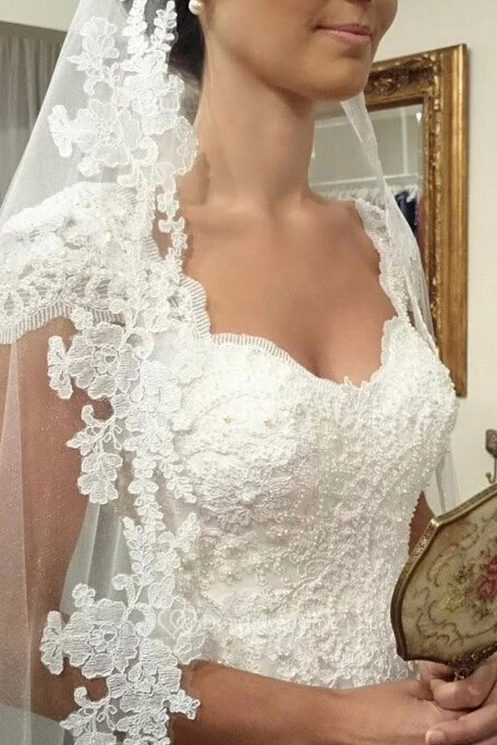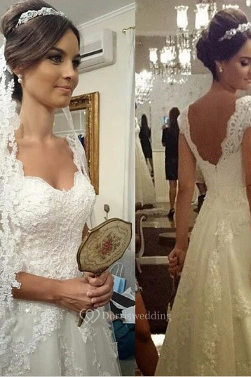 Cap-sleeved Sweetheart A-line Tulle Gown With Lace Bodice