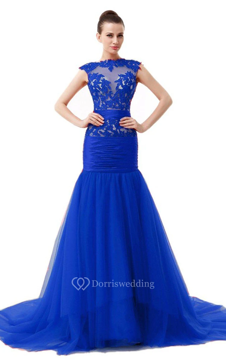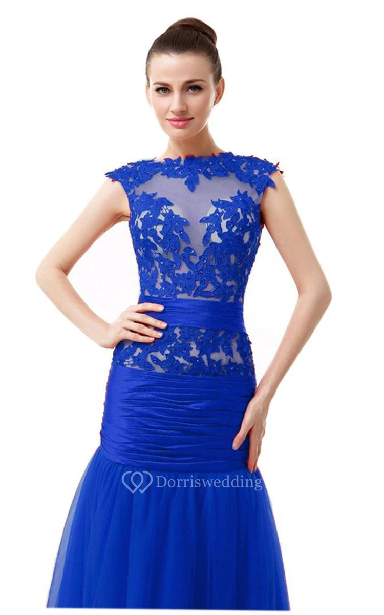 Cap-sleeved Trumpet Dress With Lace Illusion Style