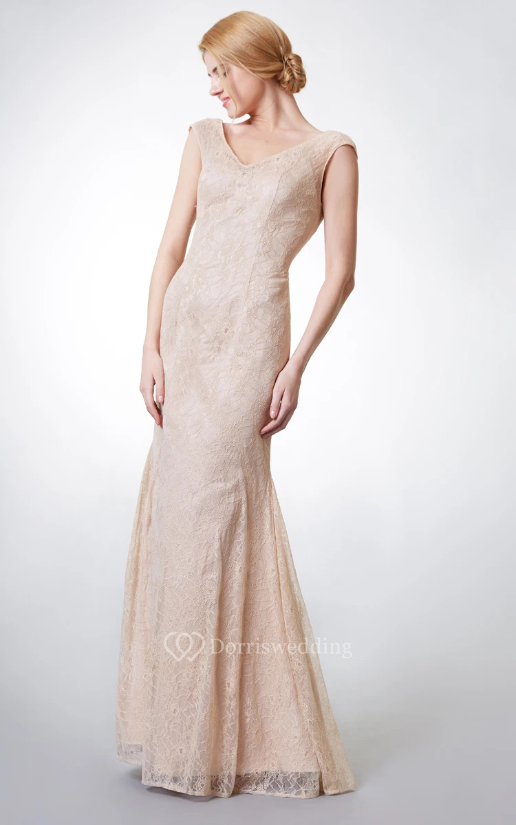Purchased this long lace gown for my sister who was a bridesmaid at her friend's wedding. Selected her size from the size charts. When she tried it on, we found that it fit like a glove. Lace material is soft and rich and does not make the dress cheap at all. Cut is flattering. My sister is tall and the dress suits better than any other. Everybody liked her dress and asked where we got it.