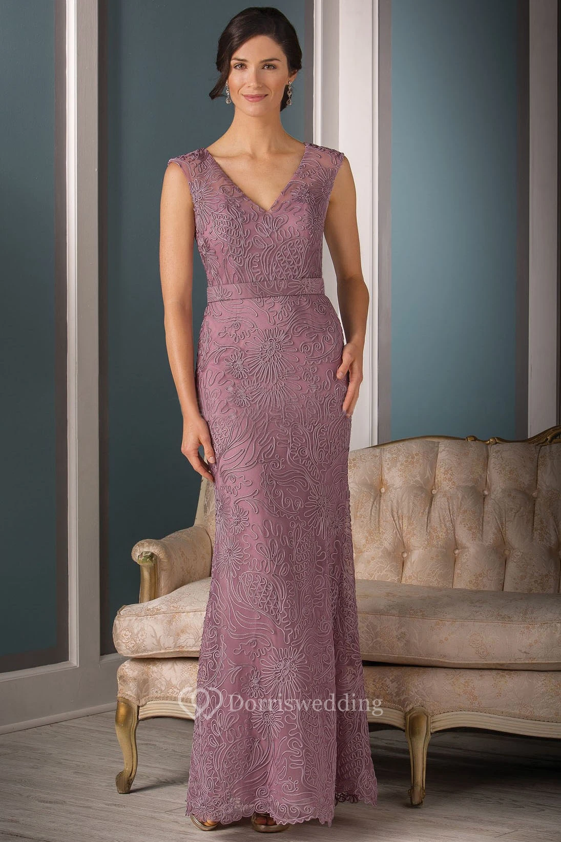 Cap-Sleeved V-Neck Long Mother Of The Bride Dress With Appliques