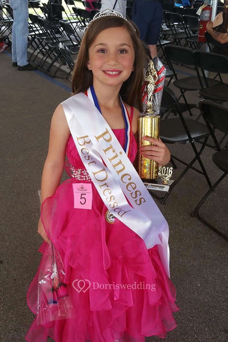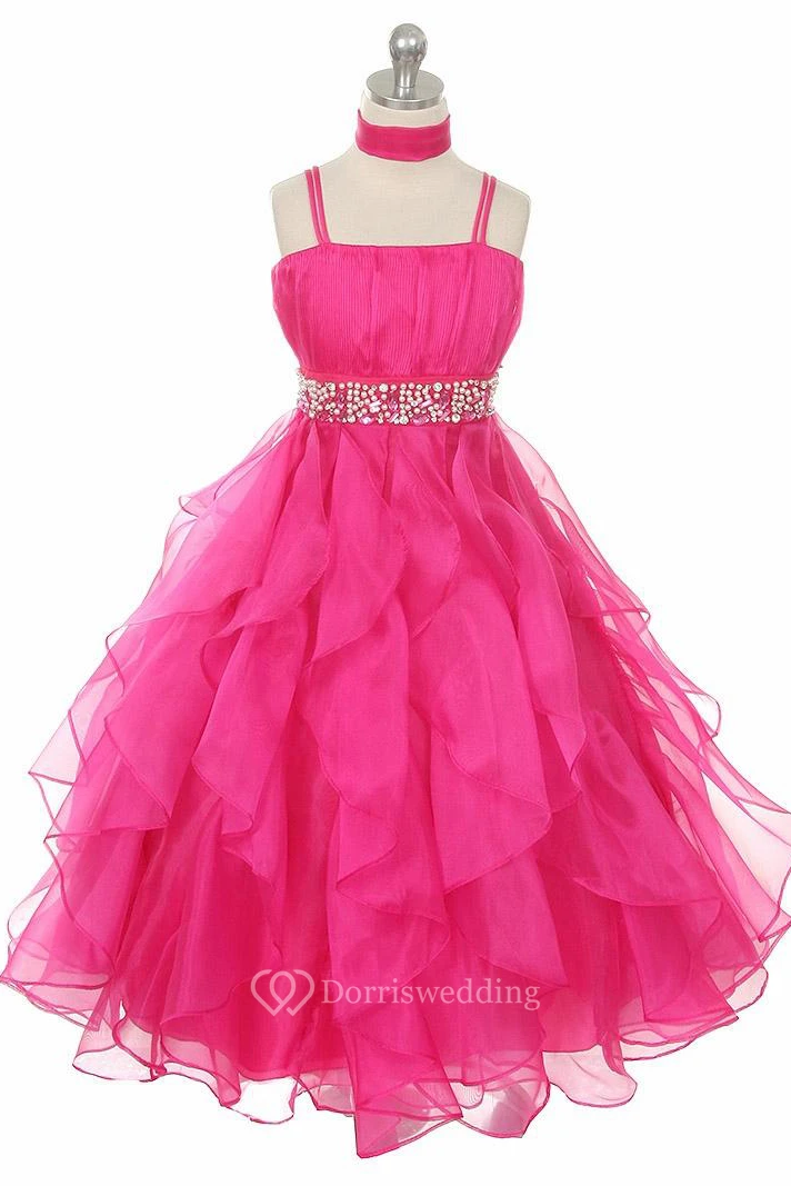 Cape Pleated Tiered Empire Organza Flower Girl Dress With Sash