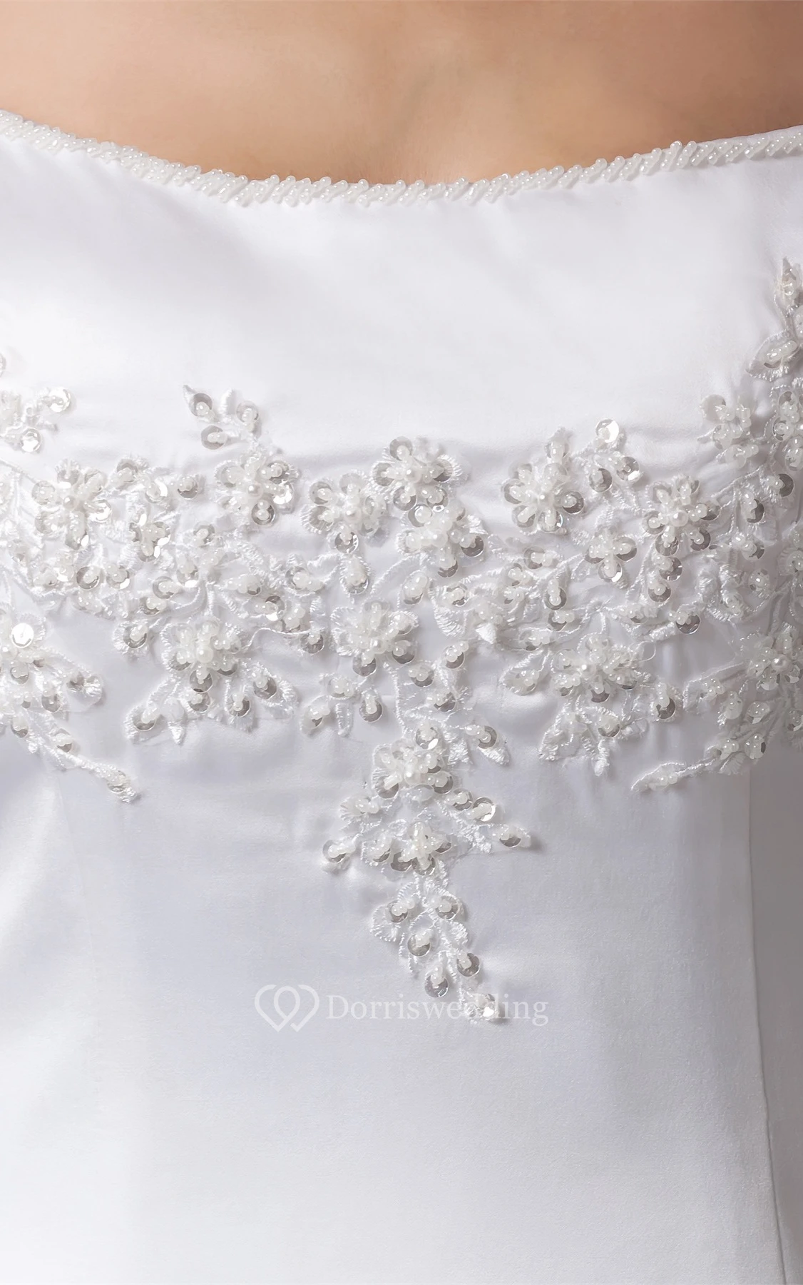 Caped-Sleeve A-Line Satin Gown With Appliques