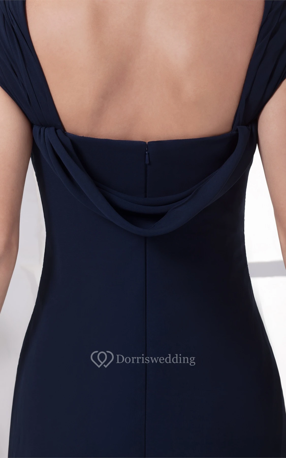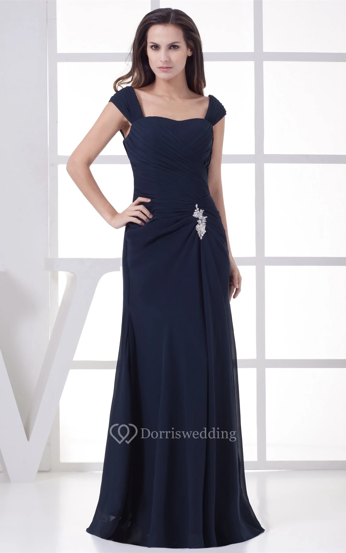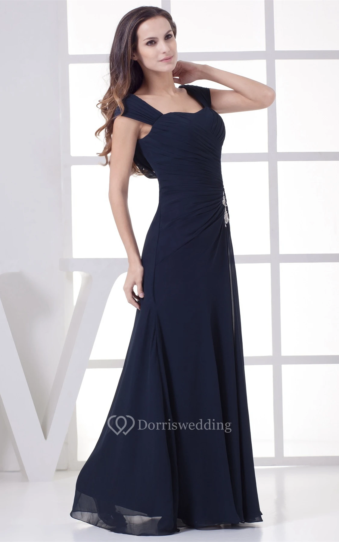 Caped-Sleeve Maxi Ruched Dress With Broach