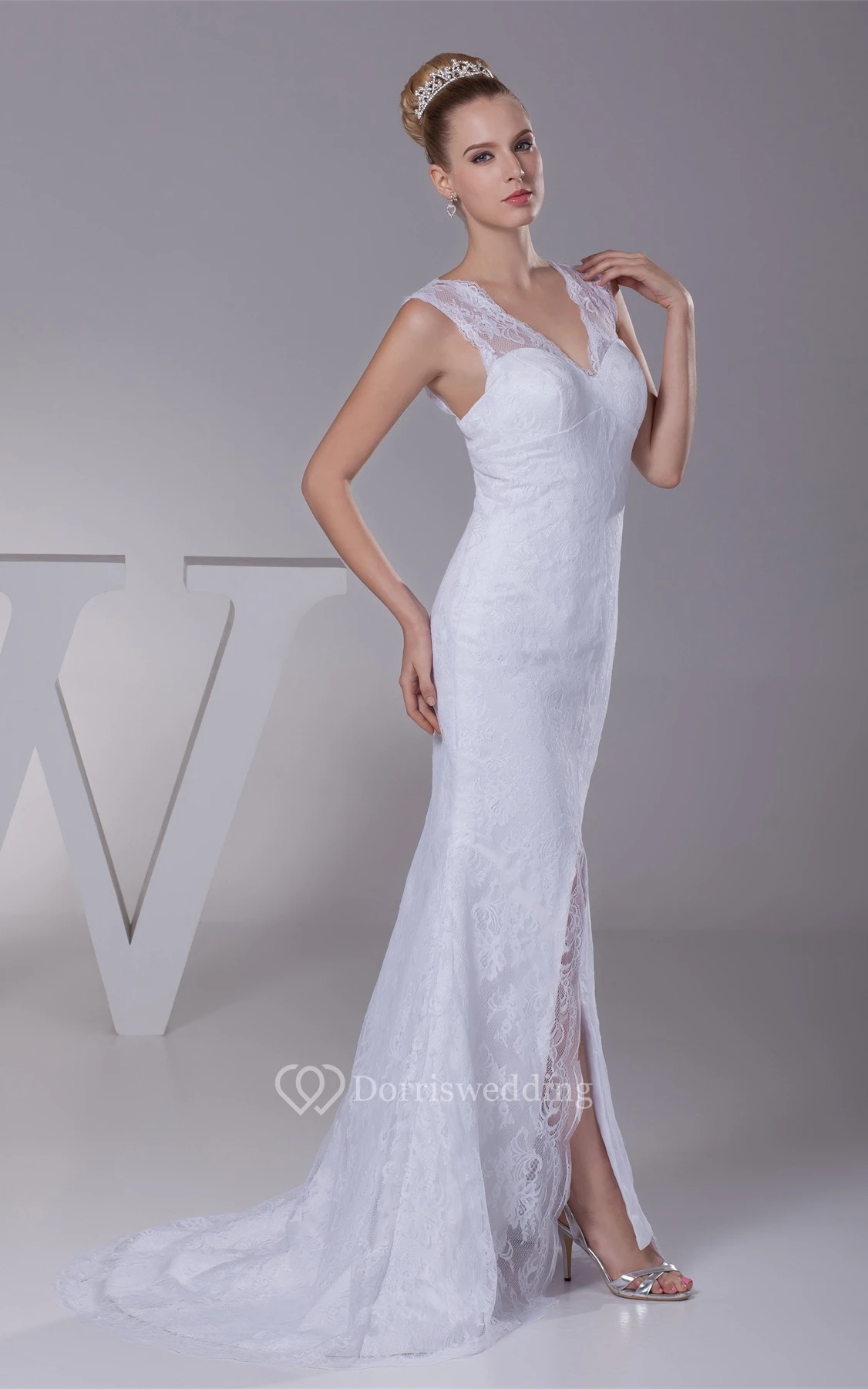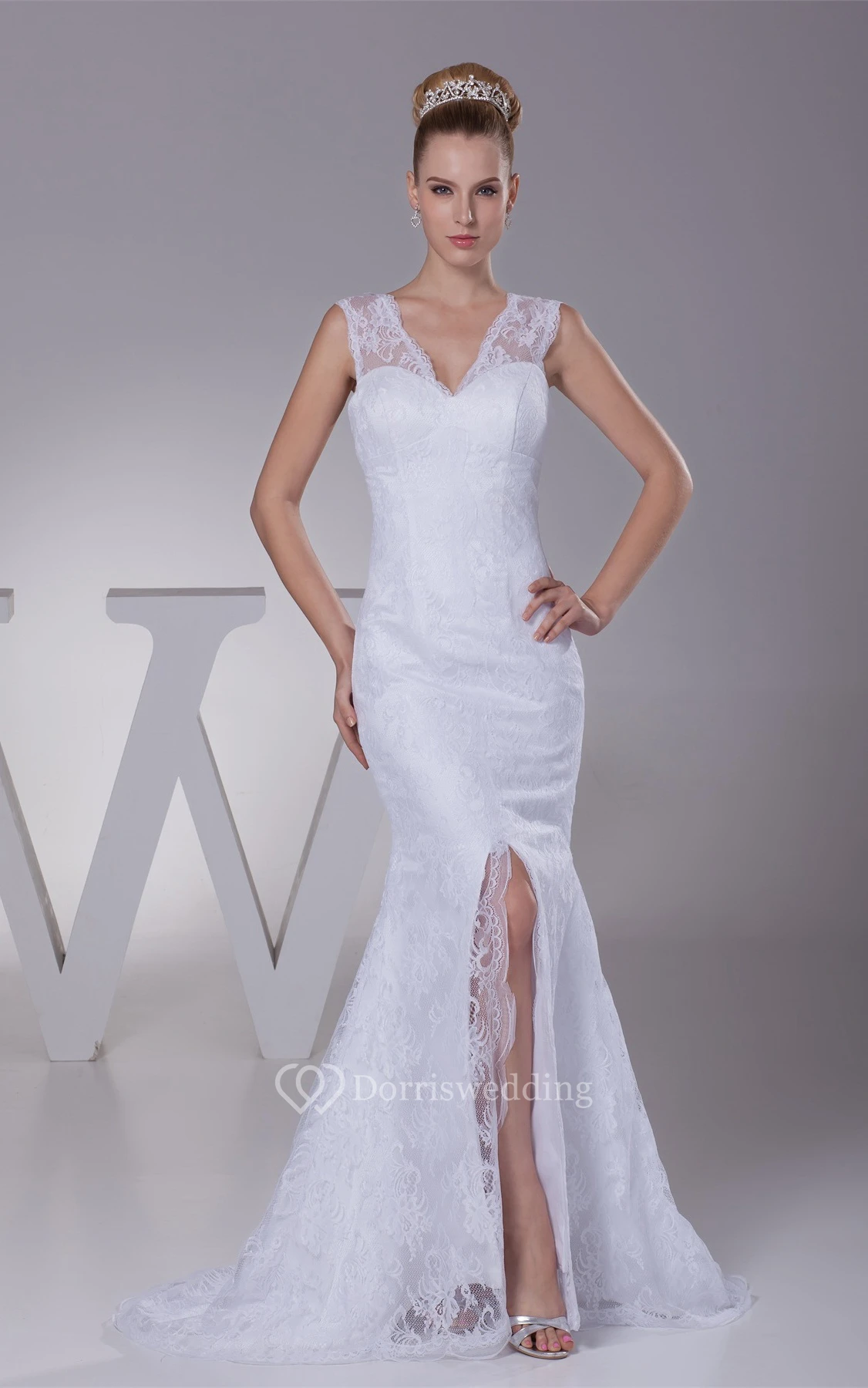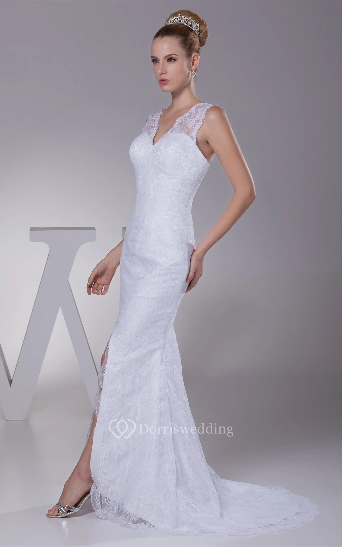 Caped-Sleeve Mermaid V-Neck Front Slit and Dress With Appliques