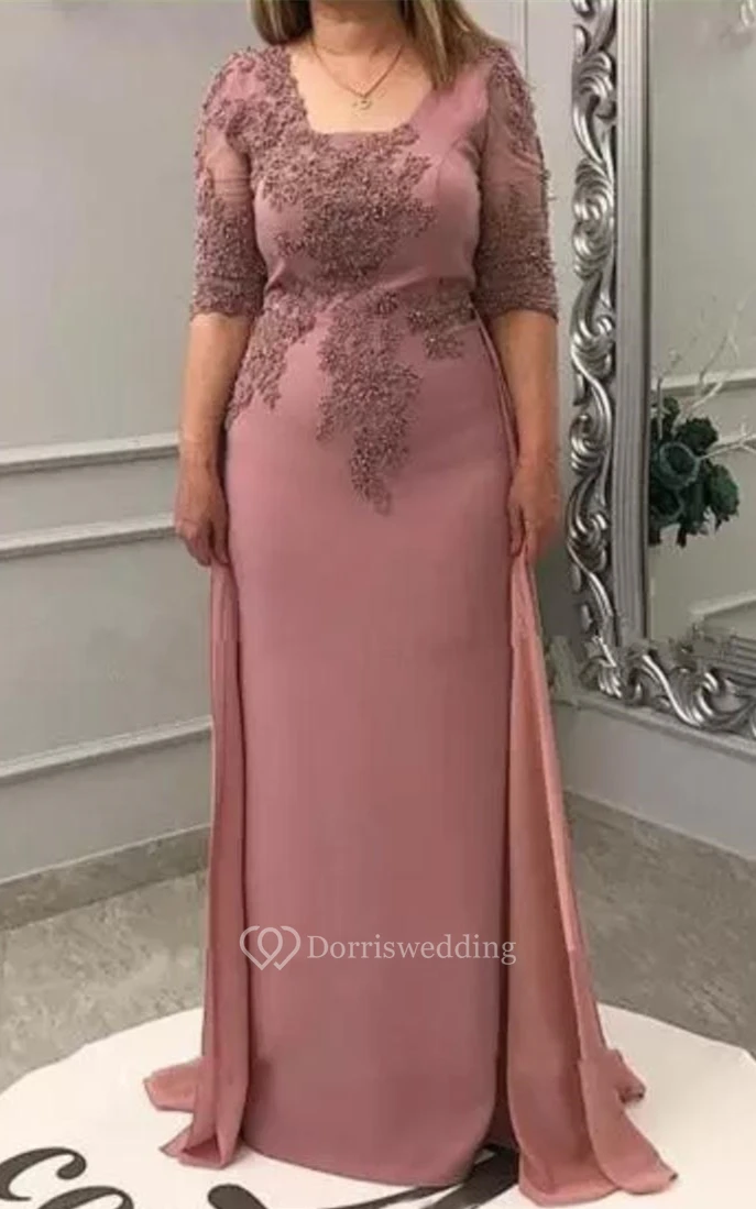 • Hemline/Train: Floor-length, Sweep/Brush Train