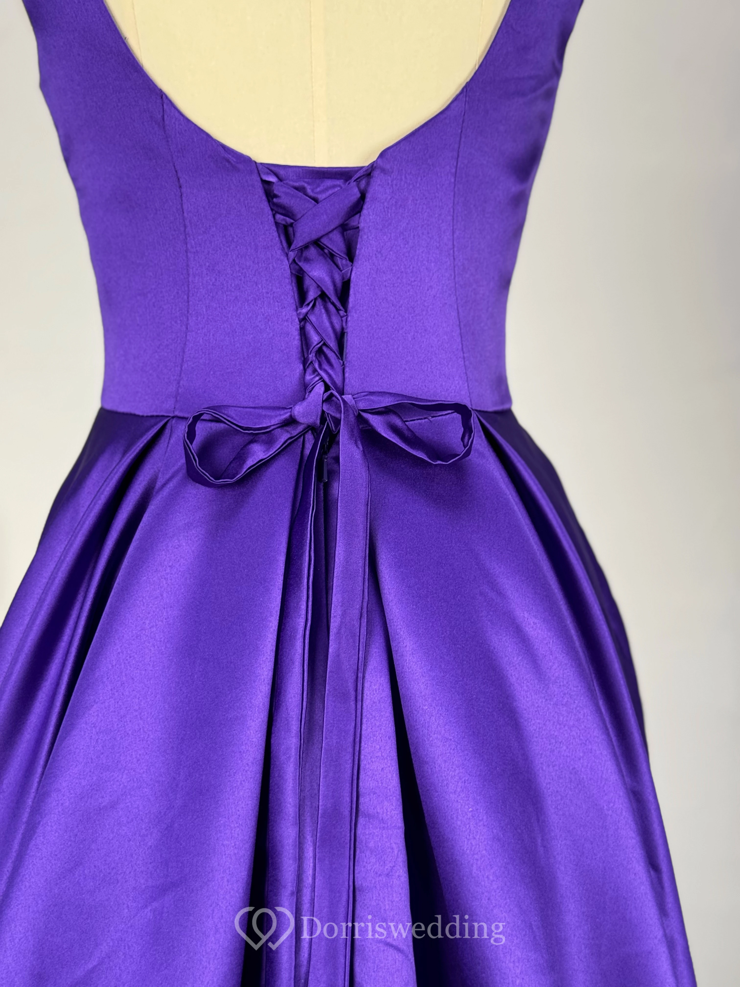 Casual A-Line Satin Scoop-neck Sleeveless Low-V Back Dress