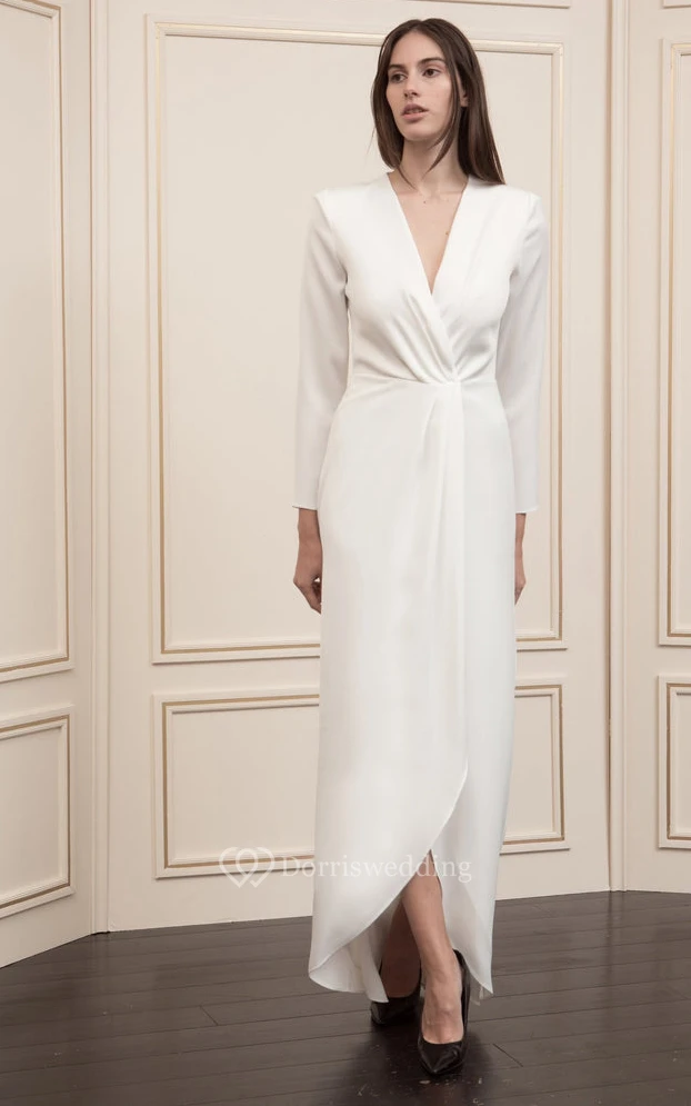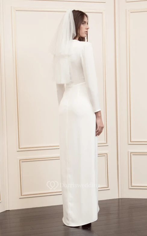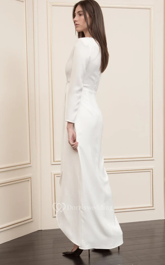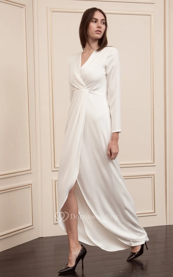 Casual Ankle-length Long Sleeve Charmeuse A Line Zipper Prom Dress with Split Front