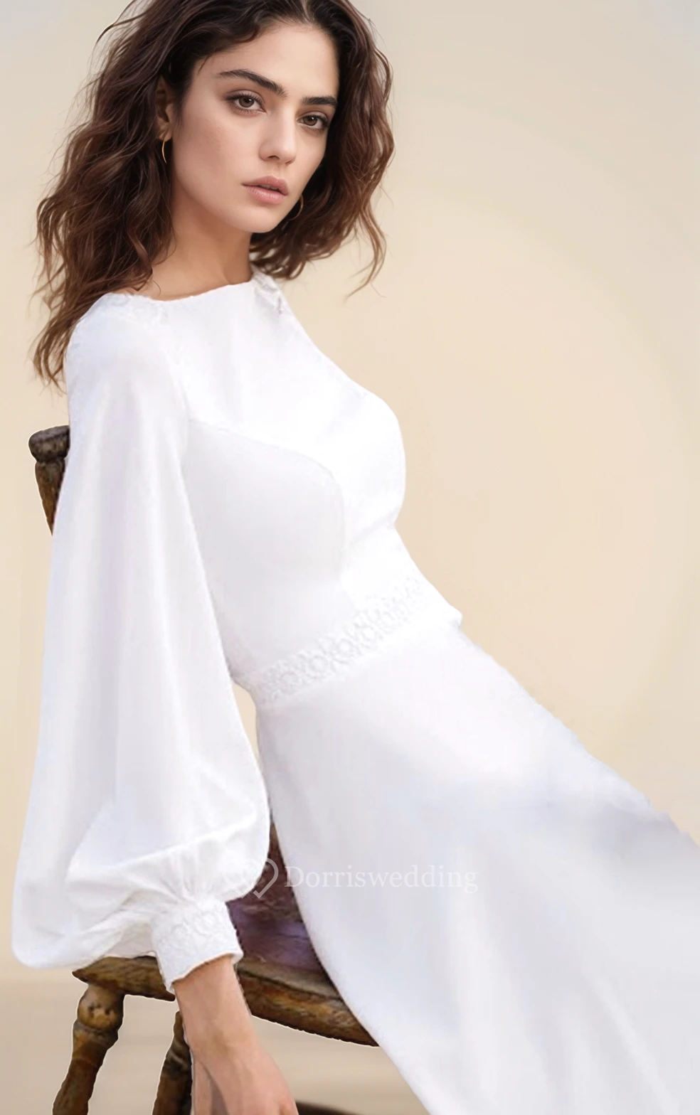 Elegant High-Neck Wedding Dress with Lace Sleeves