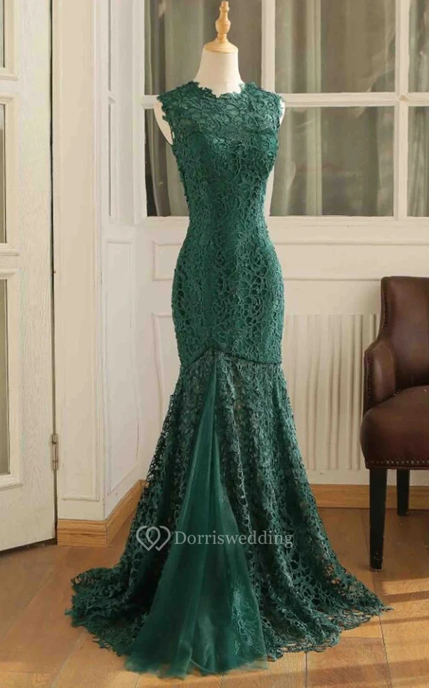 Casual Lace Floor-length Sleeveless Mermaid Zipper Prom Dress