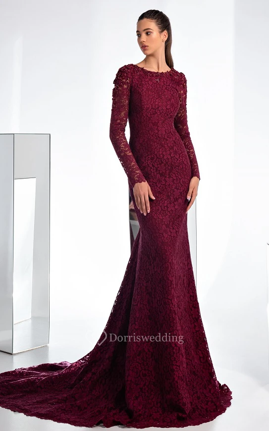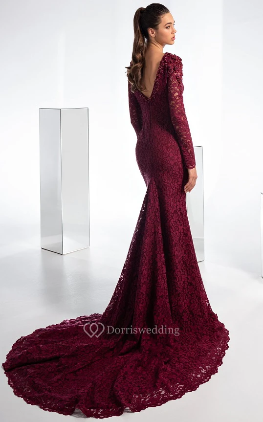 Casual Mermaid Lace Bateau Floor-length Low-V Back Prom Dress