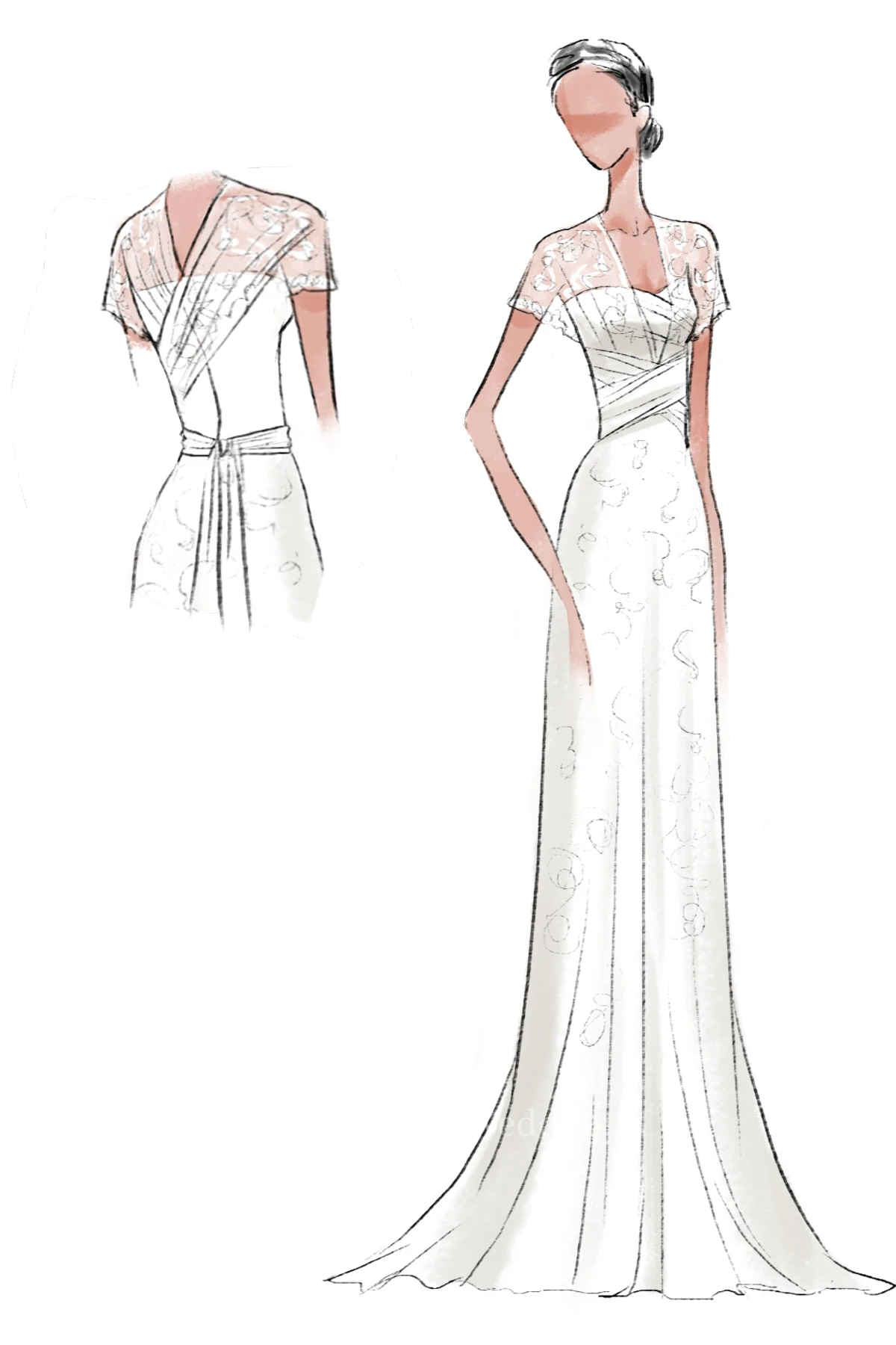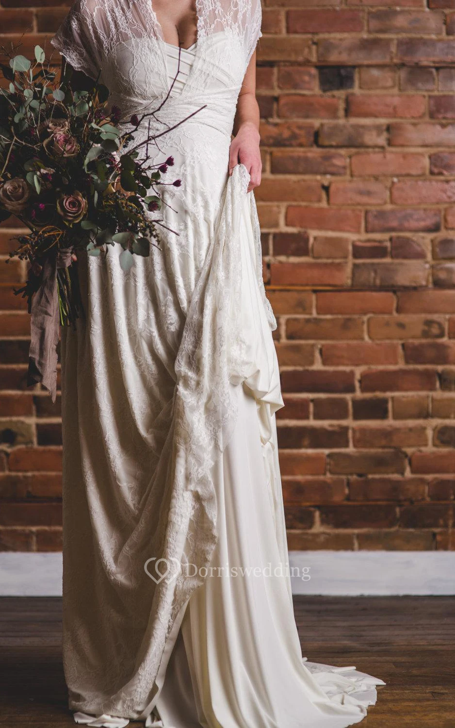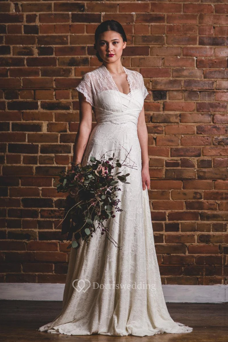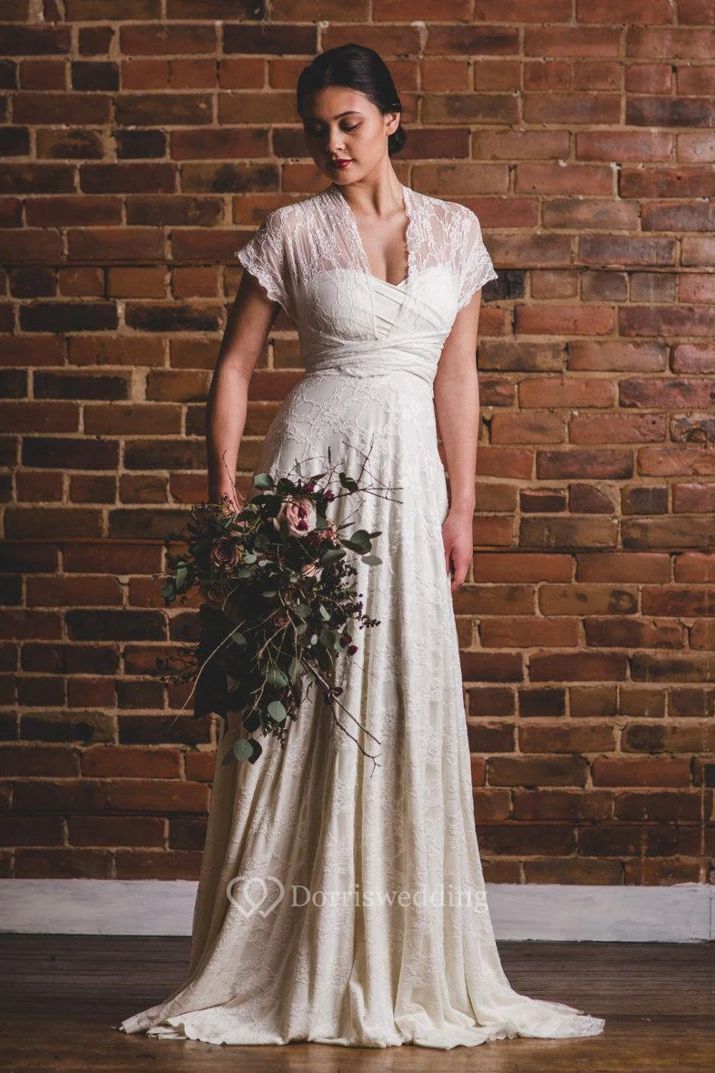 While we don't have additional photos of the dress without the lace wrap, we can confirm that it features a flattering sweetheart neckline and a discreet zipper back for a secure and elegant fit.