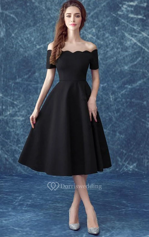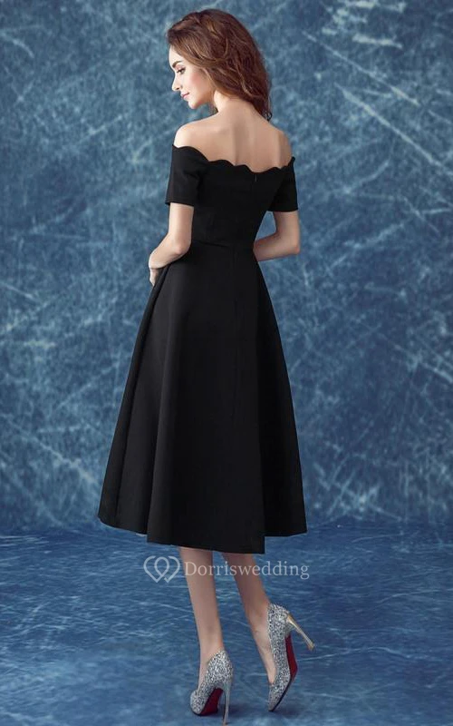Casual Off the Shoulder Short Sleeves Tea-Length Cocktail Dress
